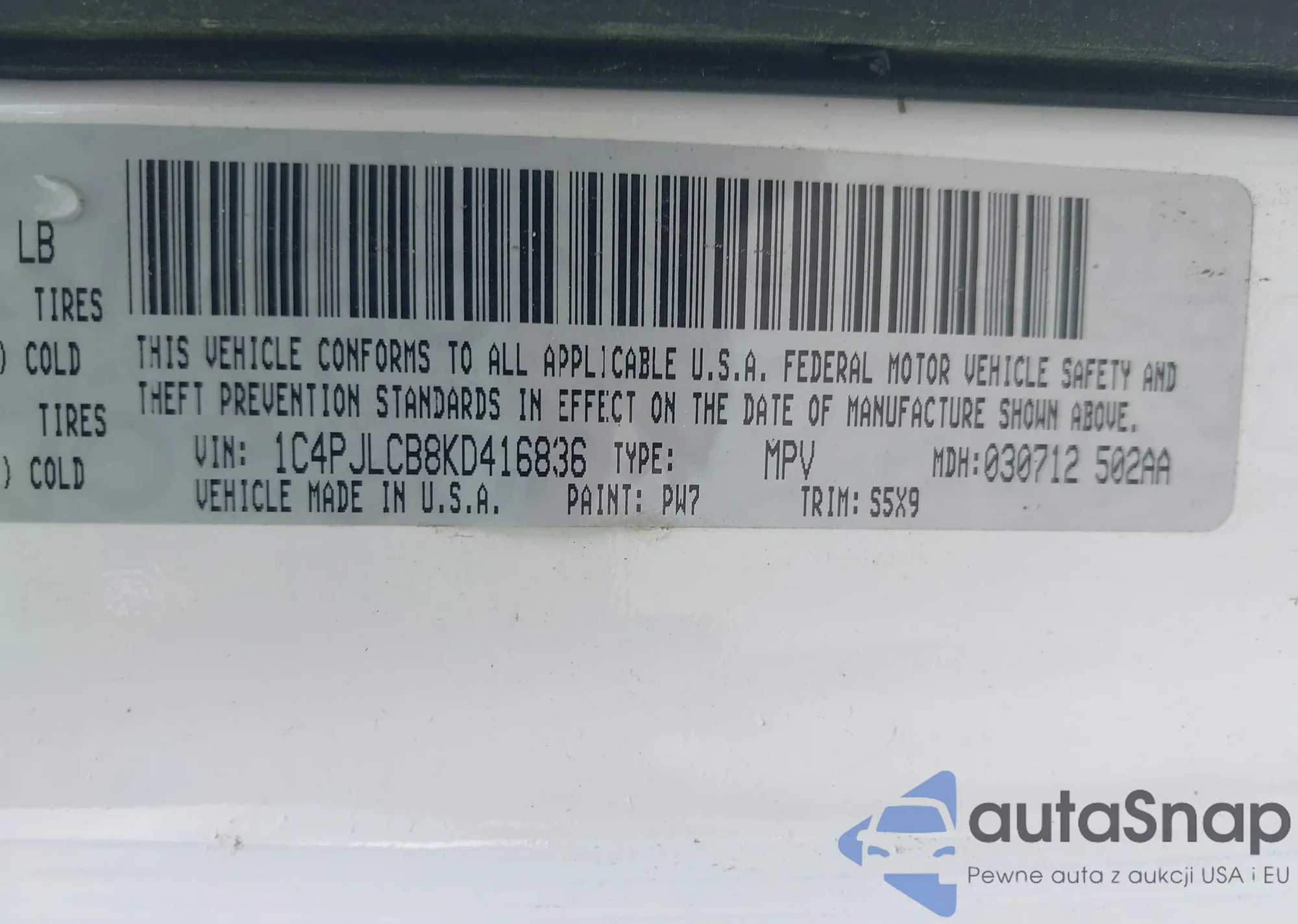 LOT: 42115269 VIN: 1C4PJLCB8KD416836