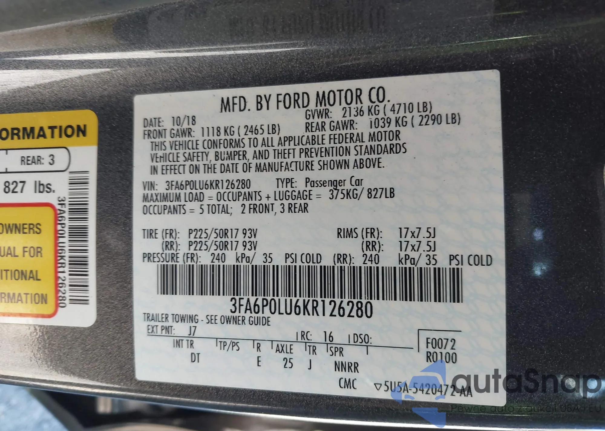 • VIN KNAFX4A89E5105659