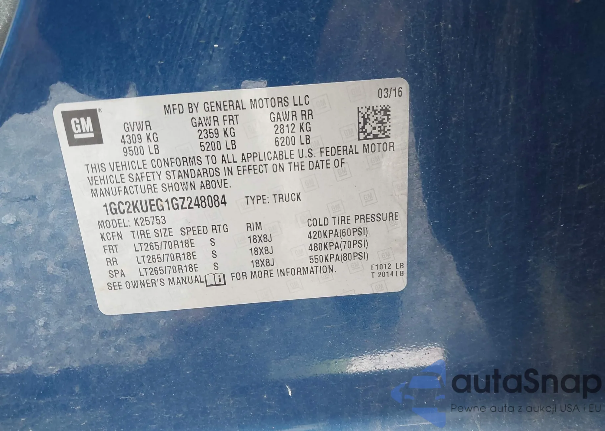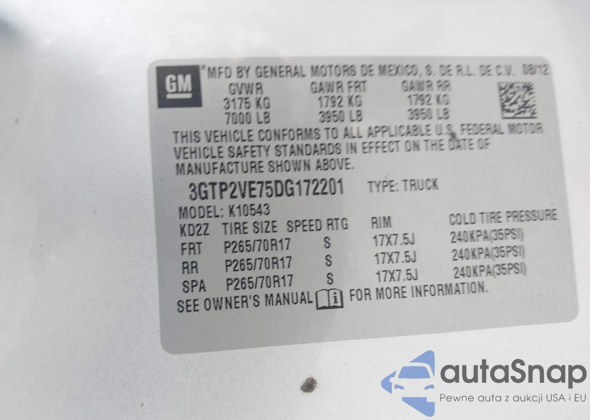 LOT: 42890247 VIN: 3GTP2VE75DG172201