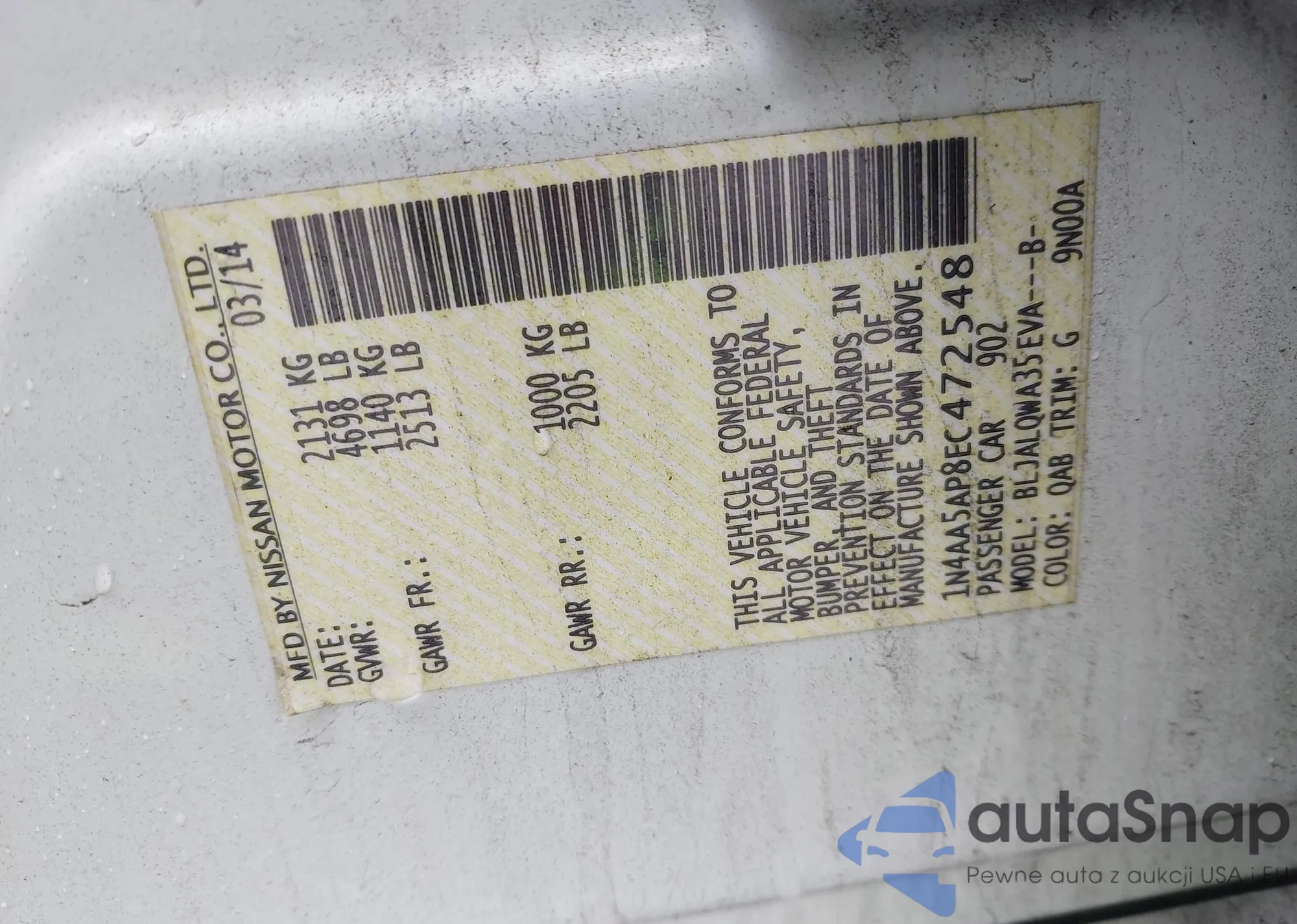 • VIN 1N4AA5AP8EC472548
