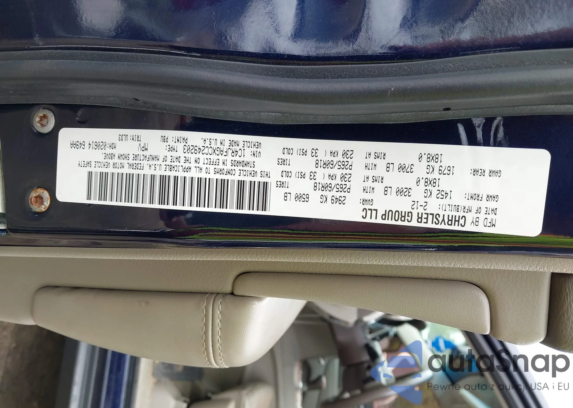 • VIN 1C4RJFAGXCC249203
