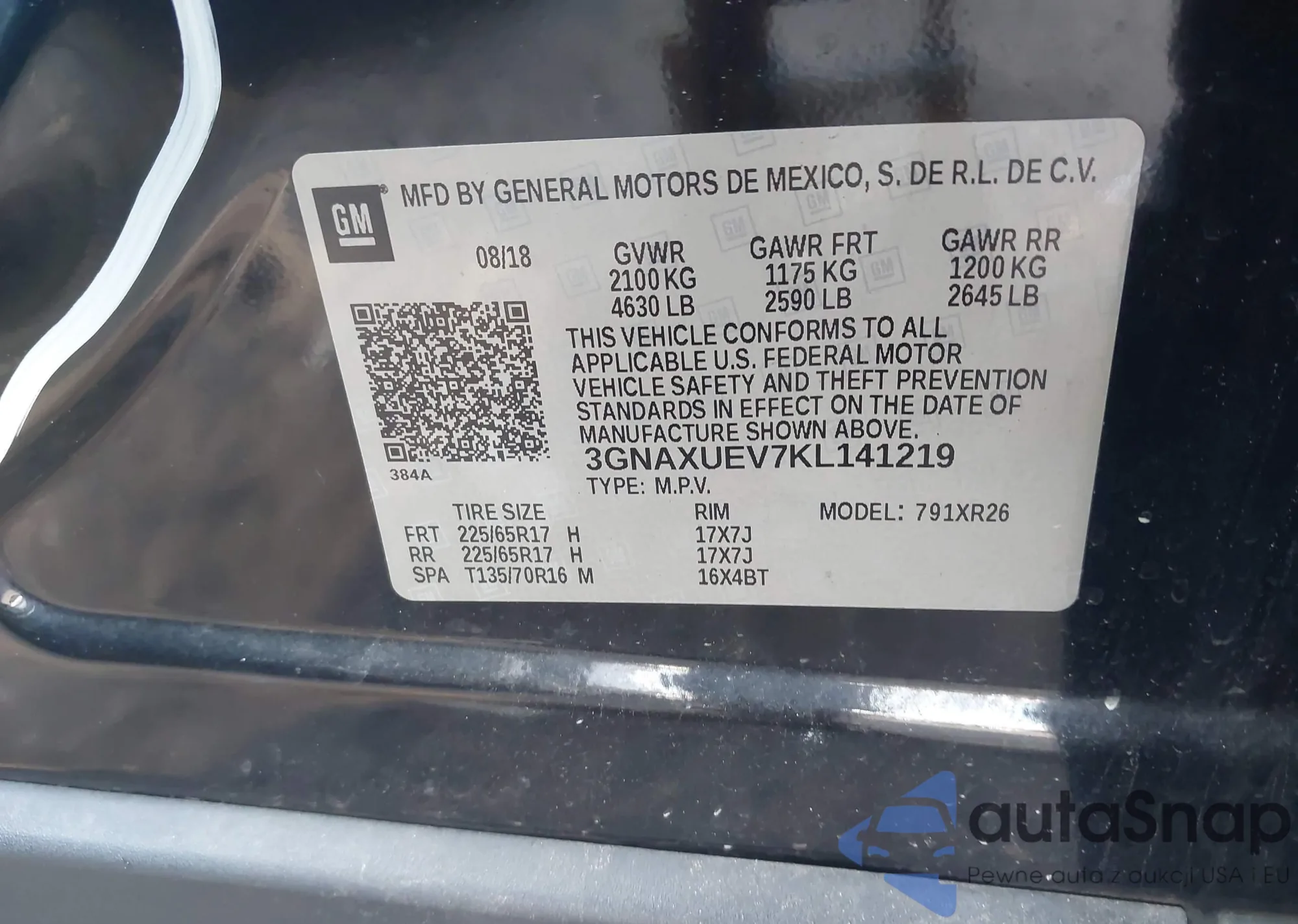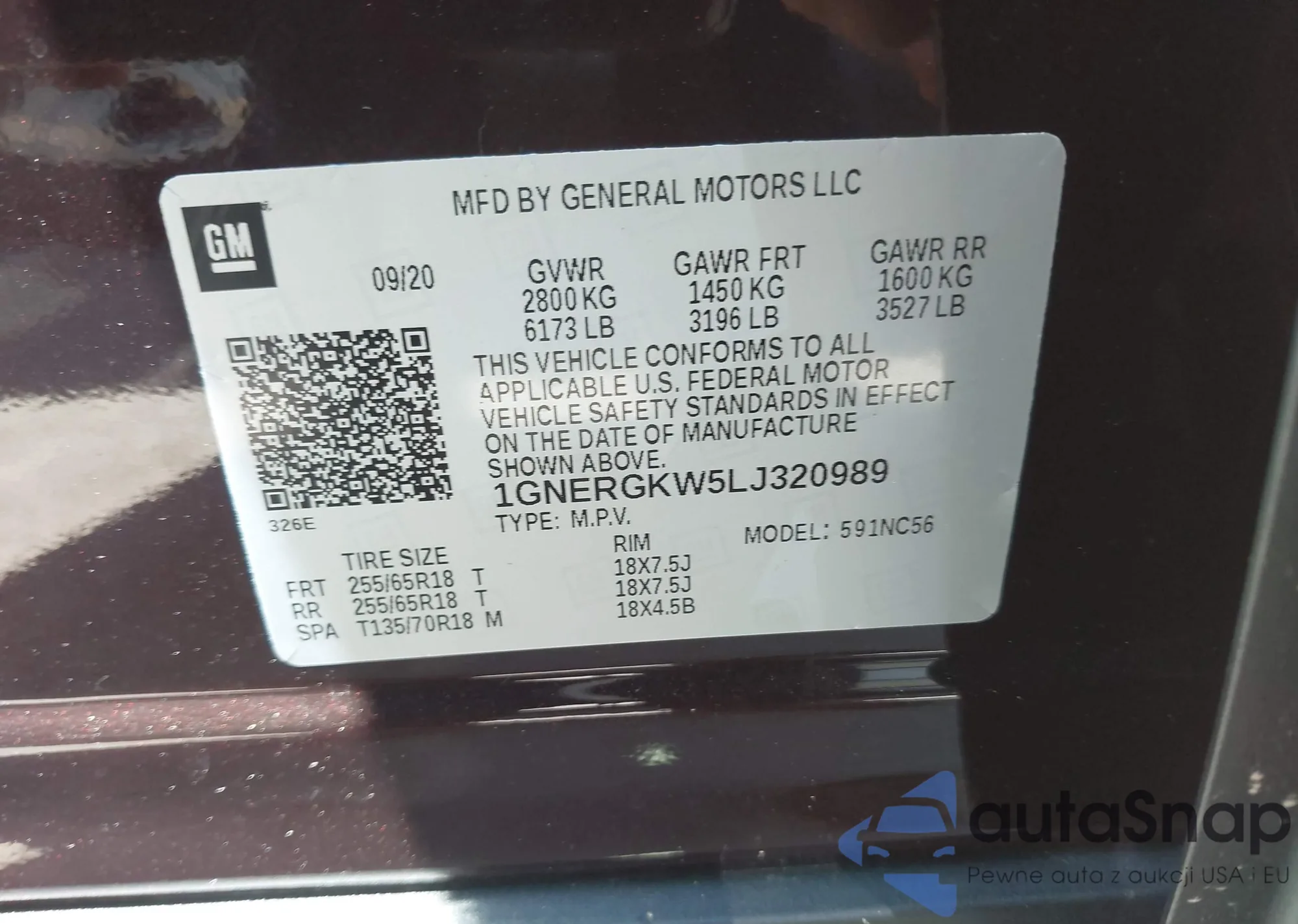 LOT: 42774795 VIN: 1GNERGKW5LJ320989