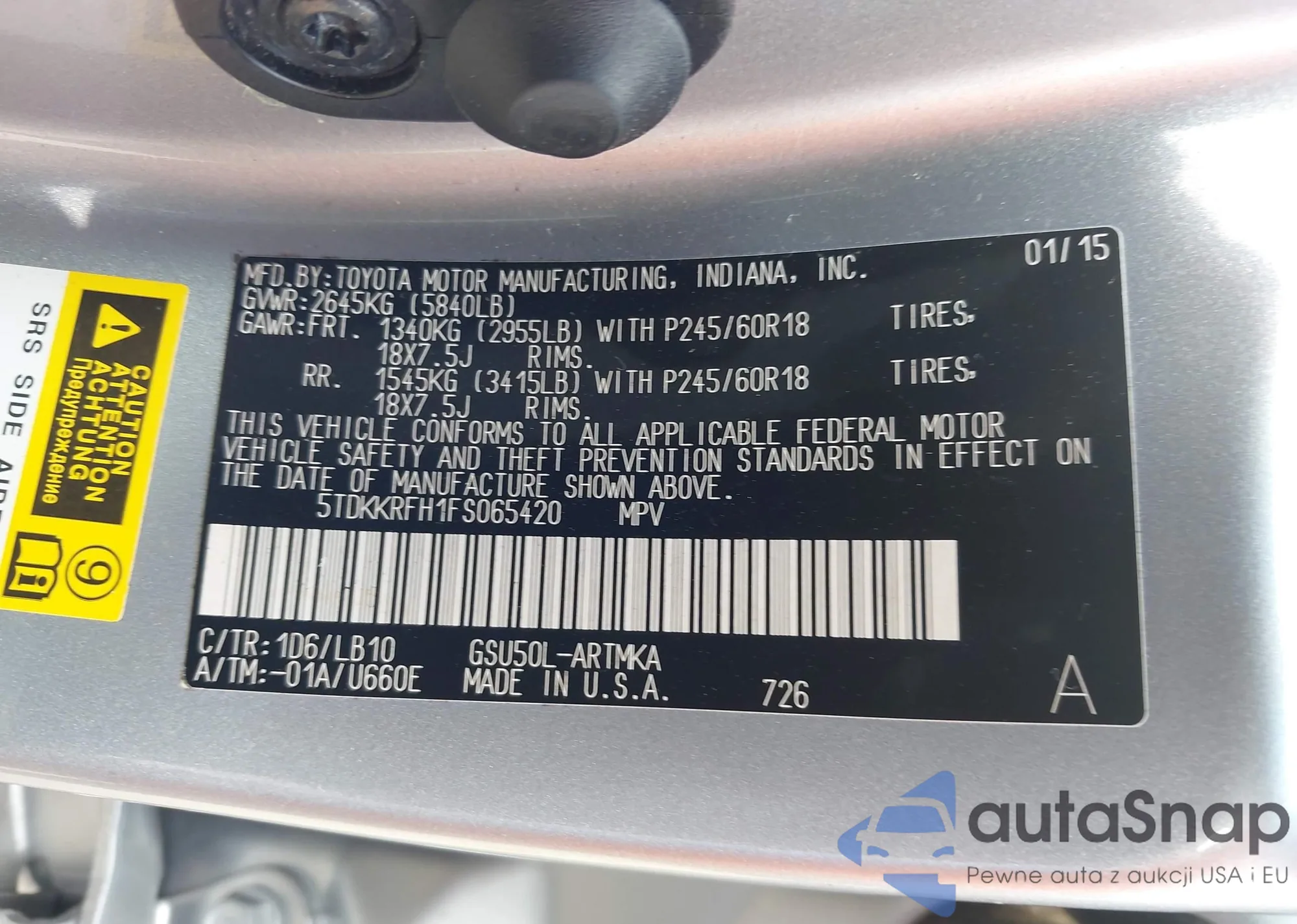 LOT: 42824895 VIN: 5TDKKRFH1FS065420