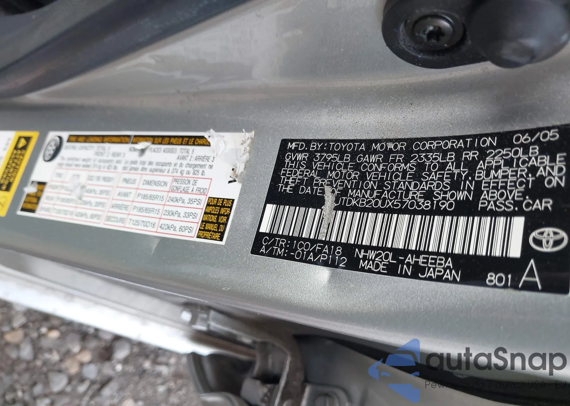 LOT: 40790029 VIN: JTDKB20UX57038190