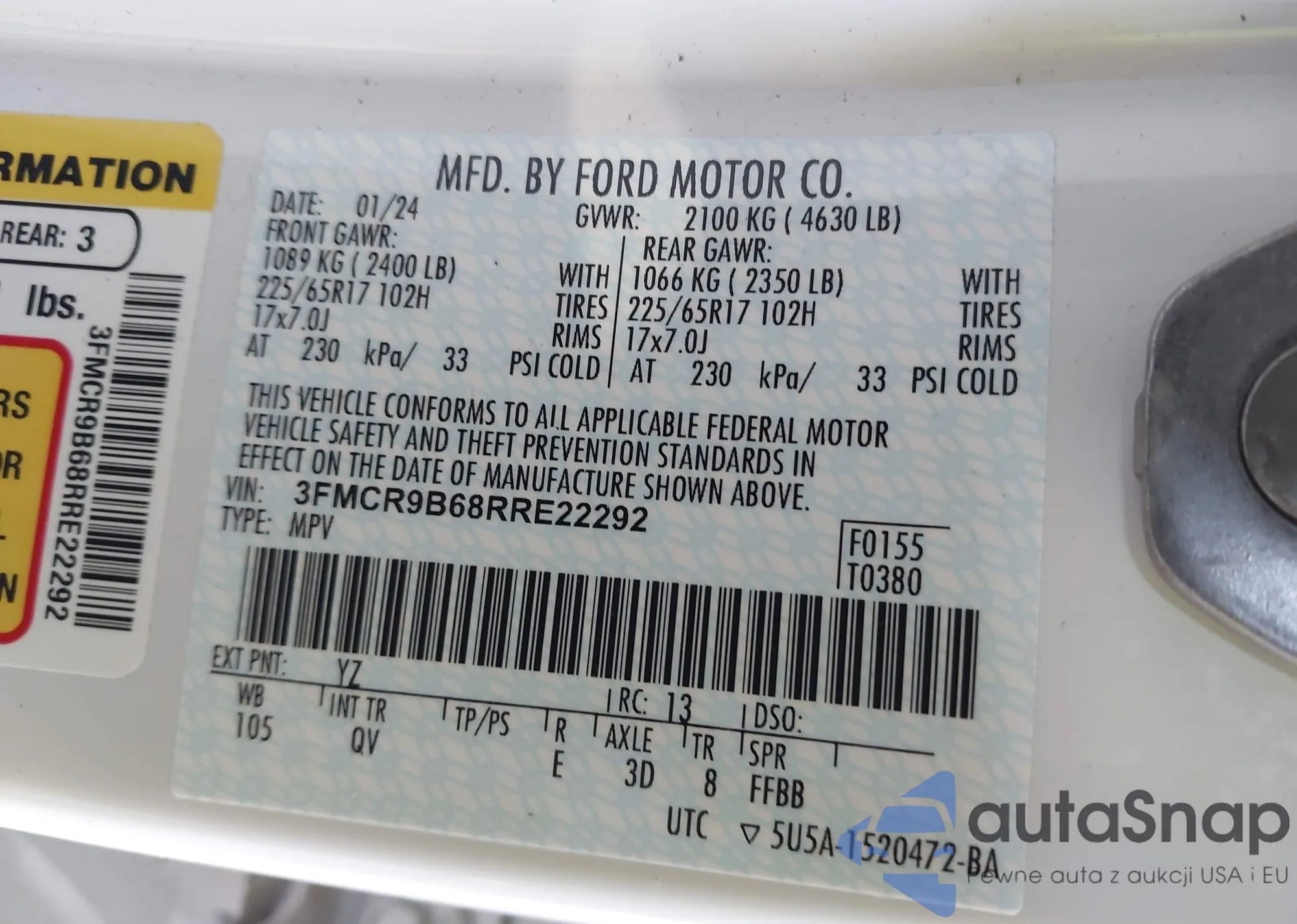 LOT: 42537095 VIN: 3FMCR9B68RRE22292