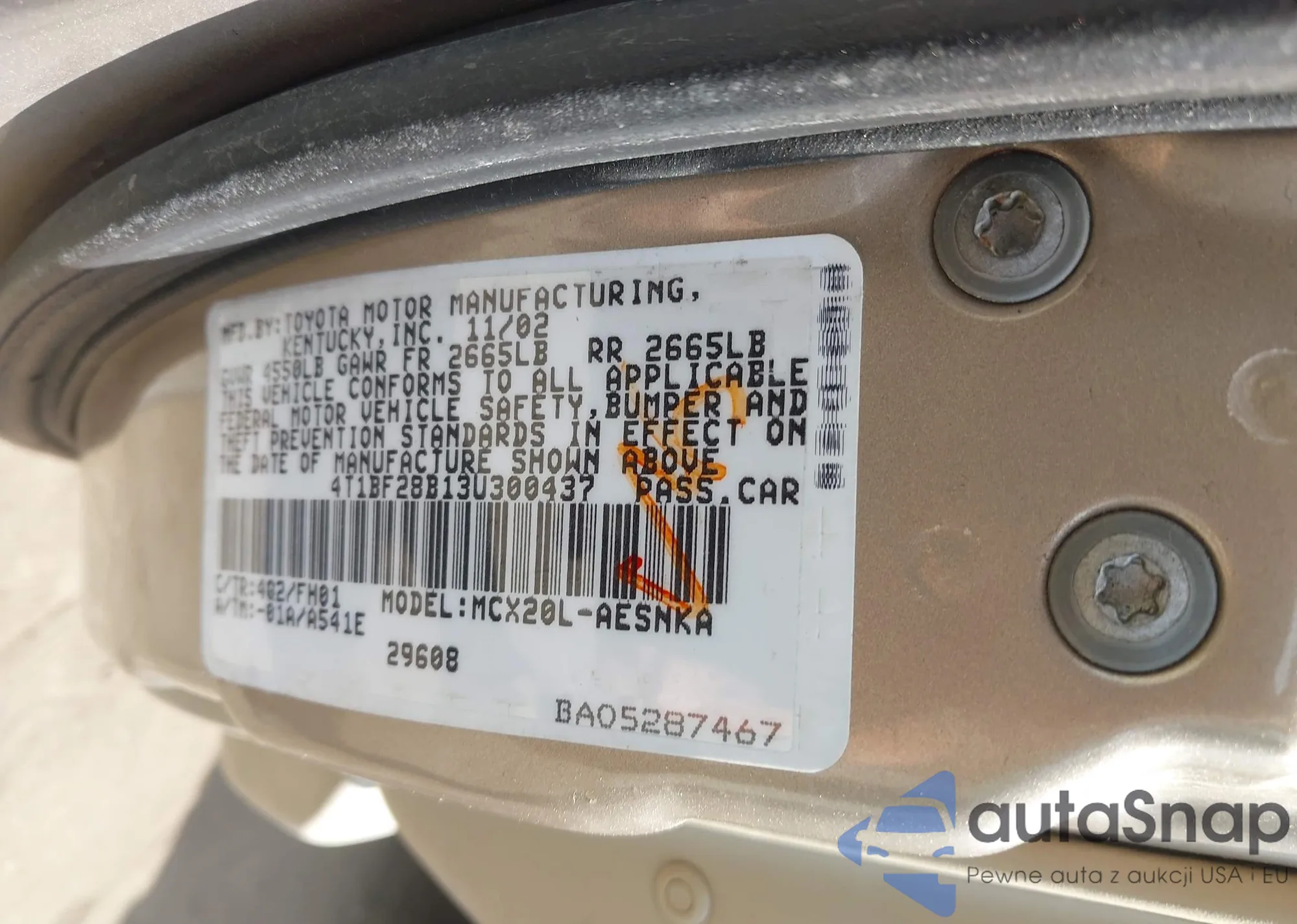LOT: 42751483 VIN: JTDKB20U383355286