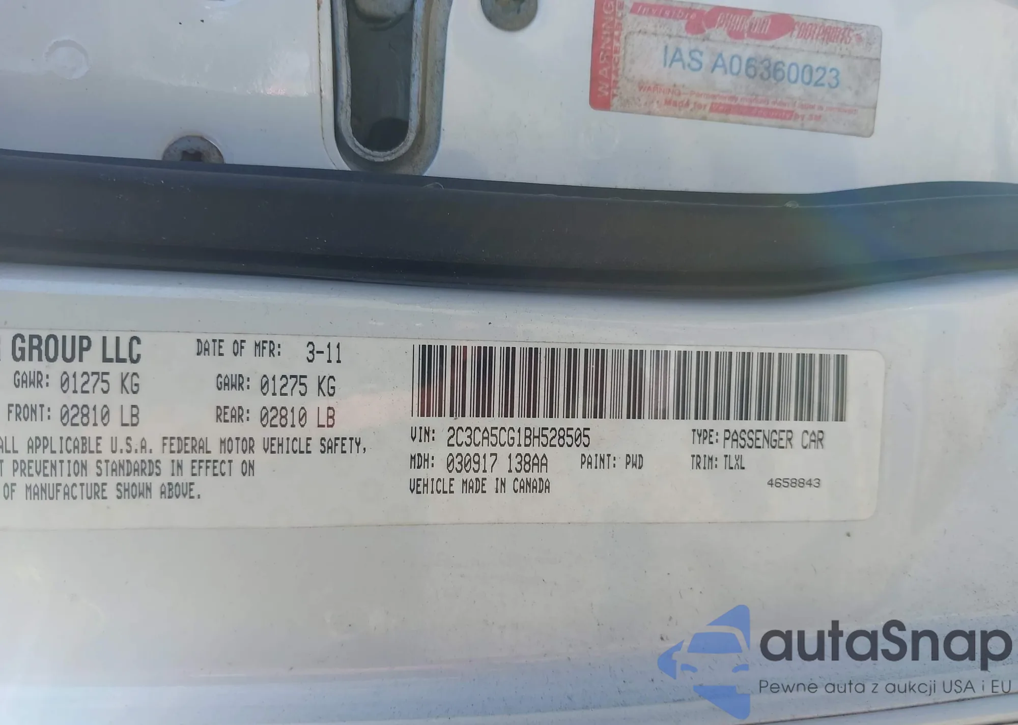 • VIN 2C3CA5CG1BH528505