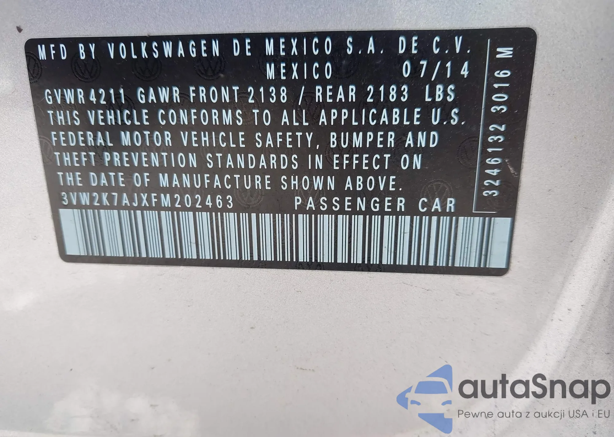 • VIN 3VW267AJ3GM397845
