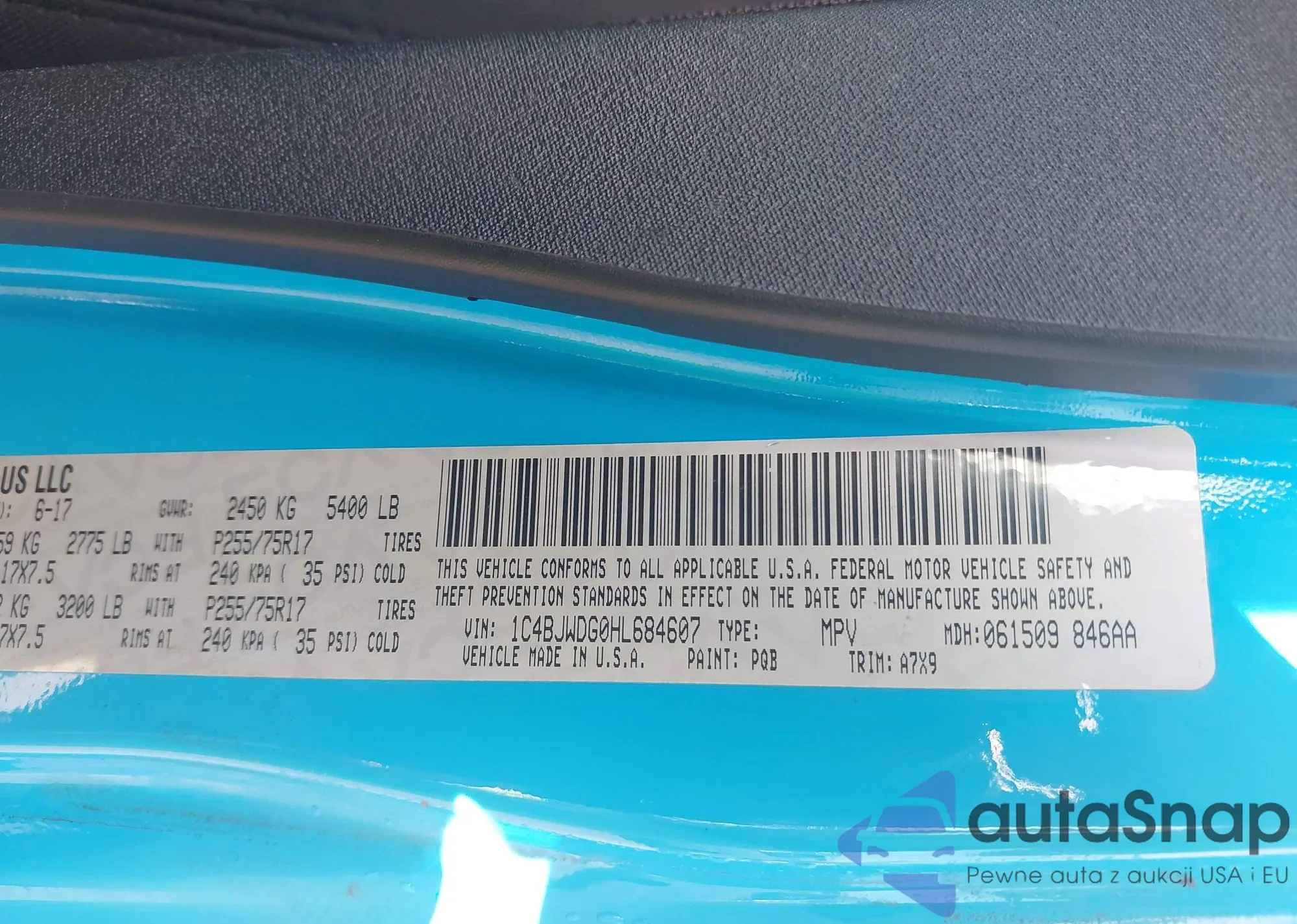 LOT: 42913246 VIN: 1C4BJWDG0HL684607