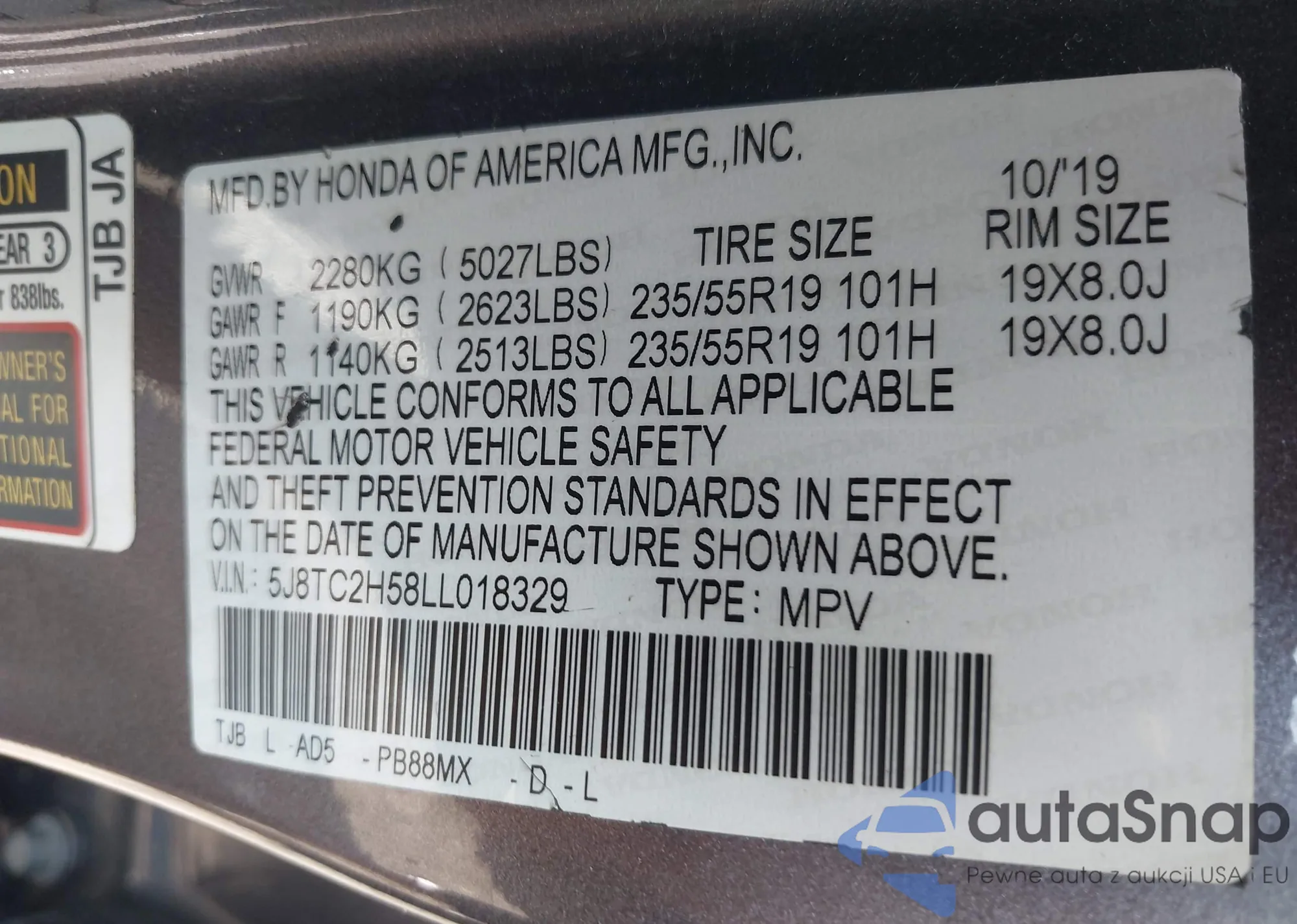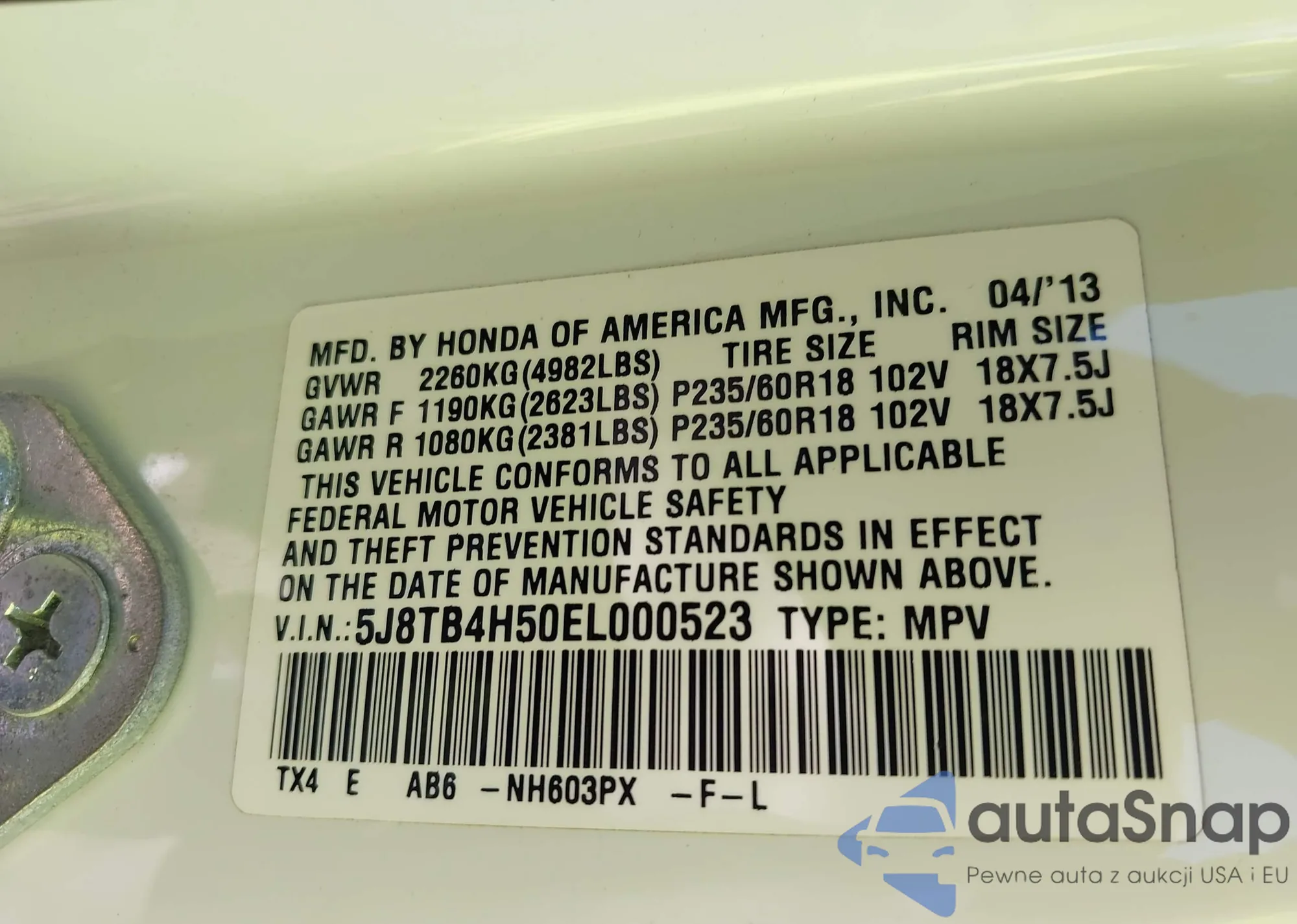 • VIN 5J8TB4H50EL000523