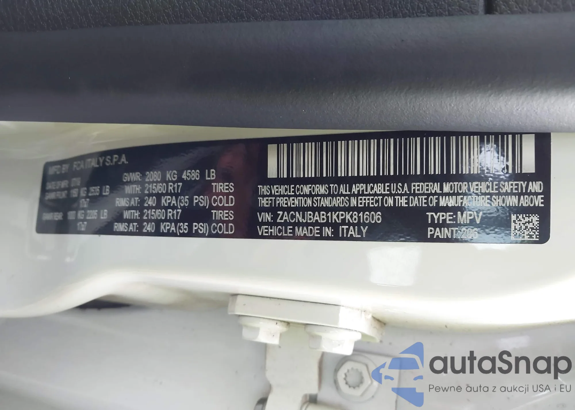 • VIN ZACNJBAB1KPK81606