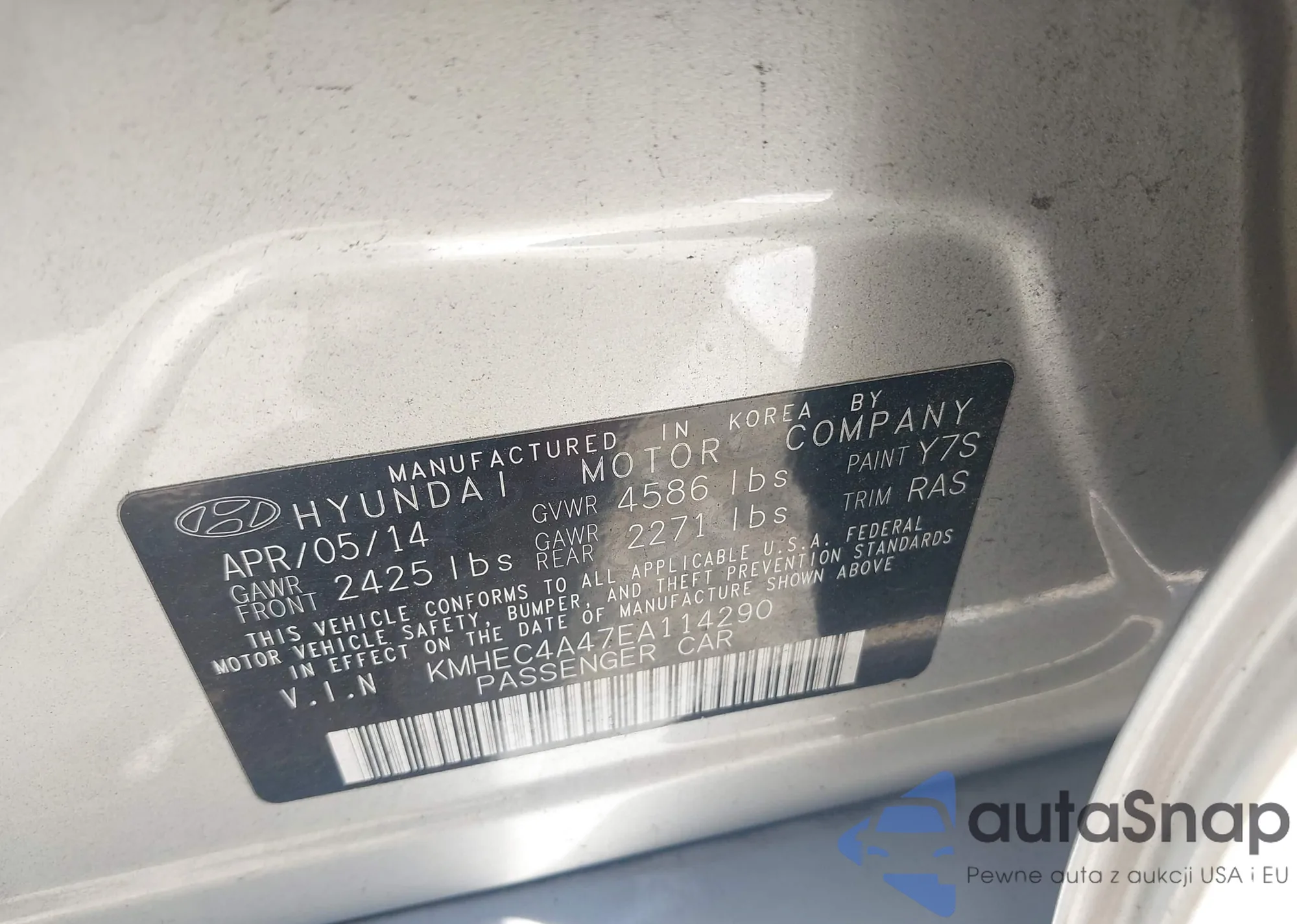 LOT: 43047051 VIN: KMHEC4A47EA114290