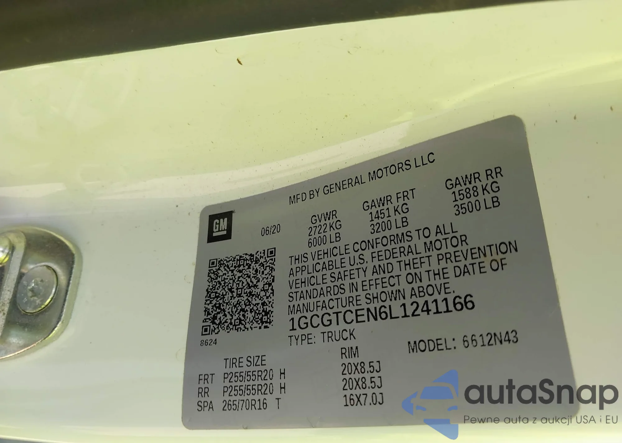 LOT: 42870320 VIN: 1GCGTCEN6L1241166