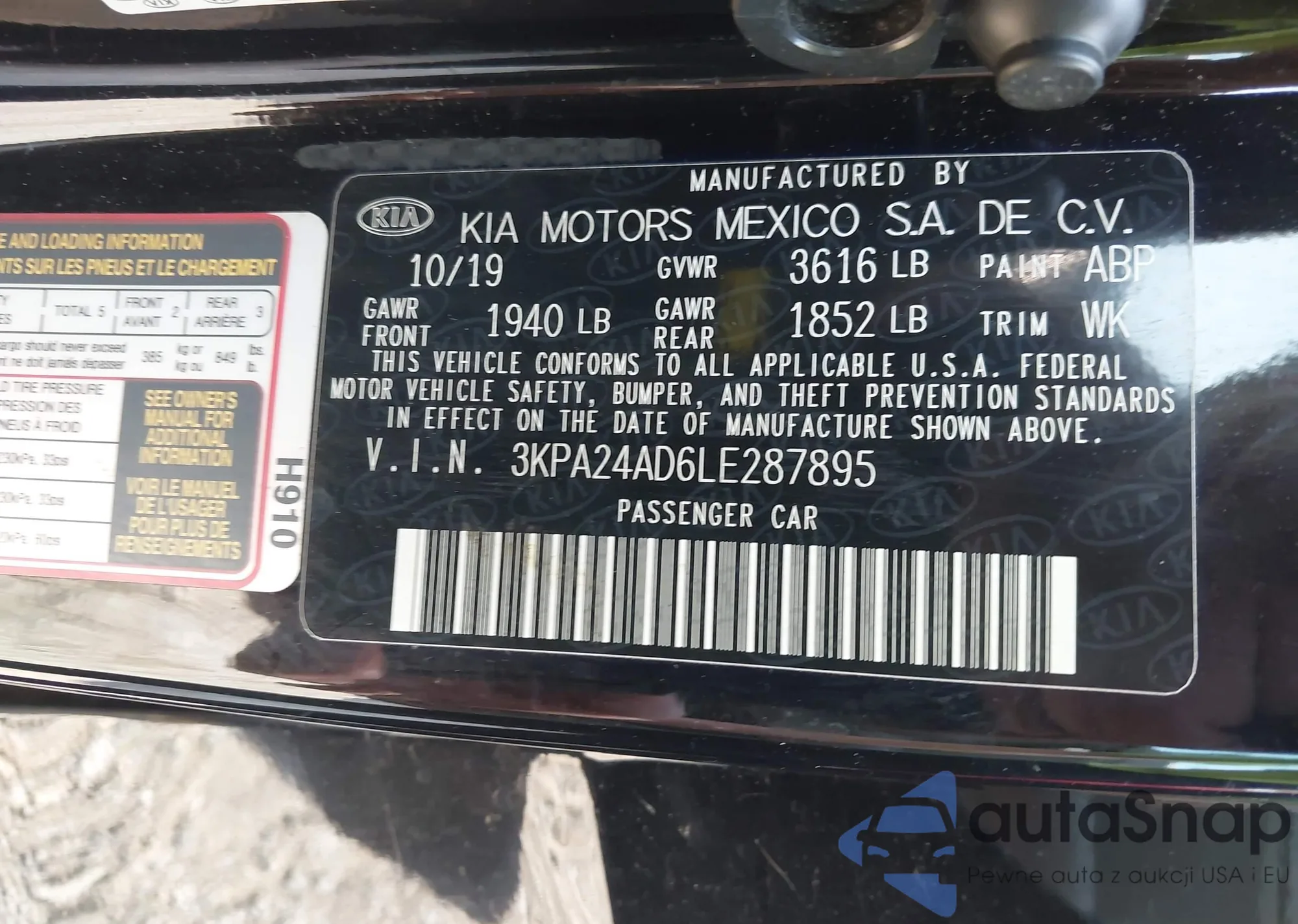 • VIN 3KPA24AD6LE287895