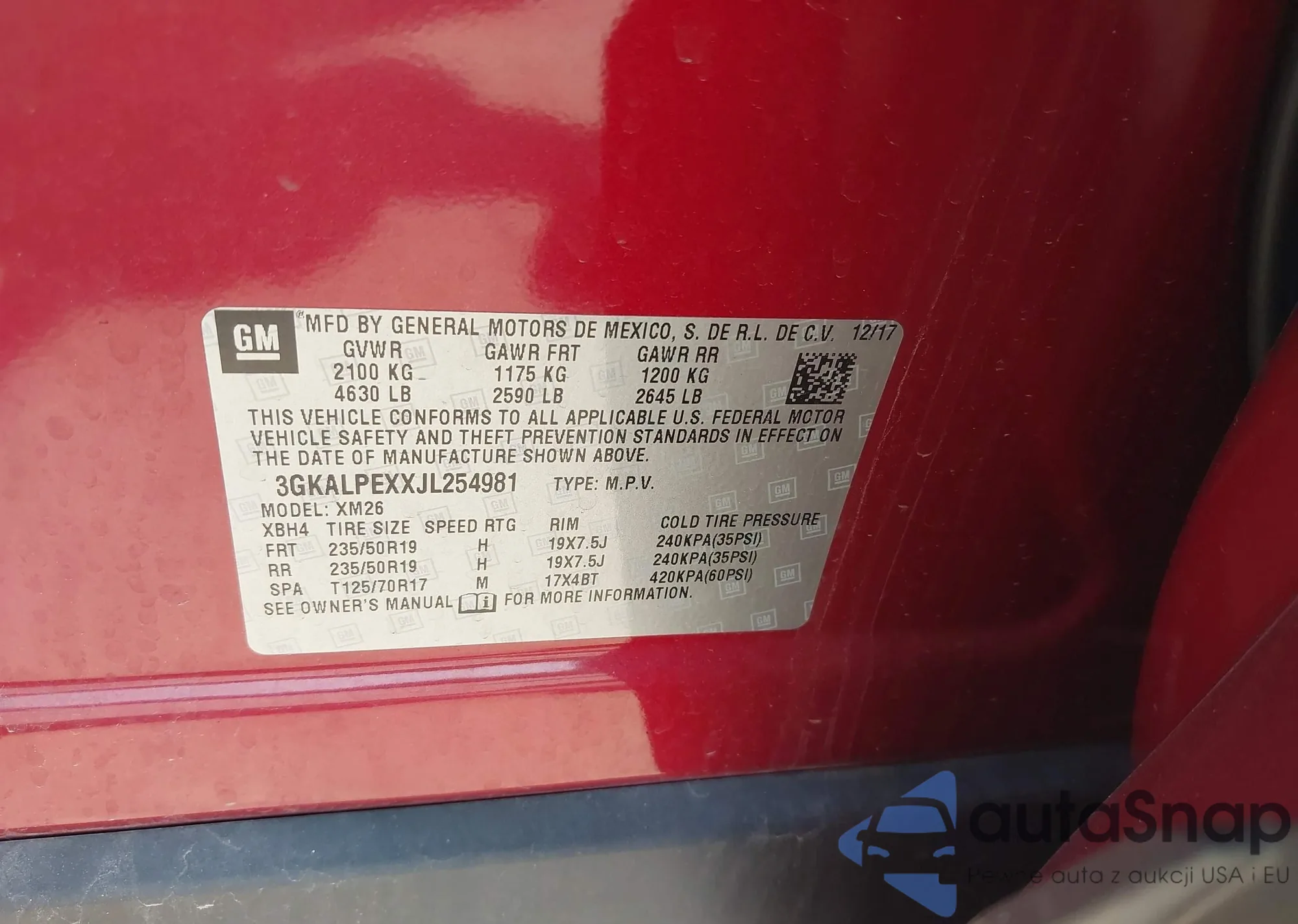 • VIN 3GKALPEXXJL254981