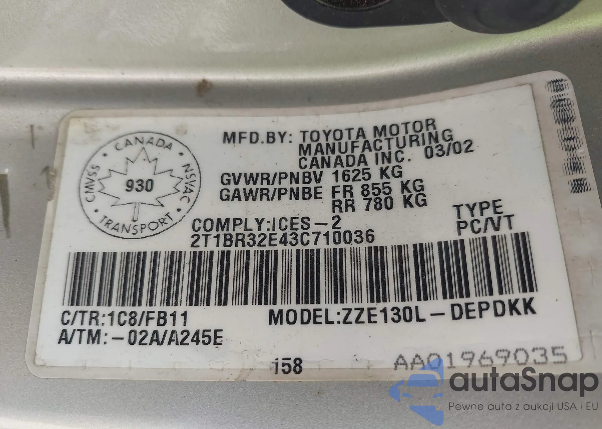 • VIN 2T1BR32E43C710036