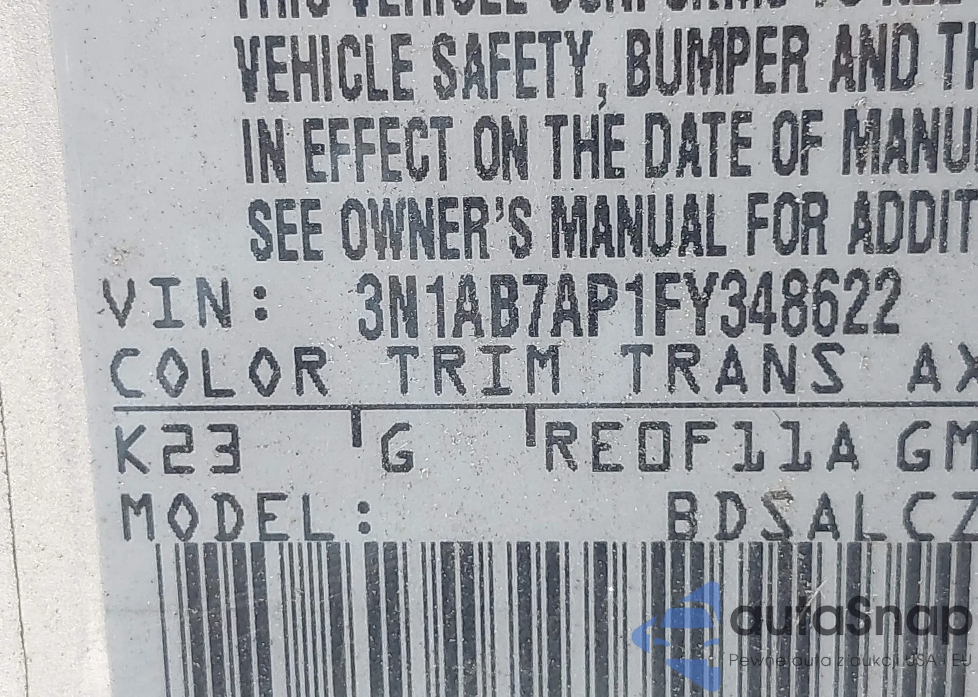 • VIN 1G1PC5SB9F7149954