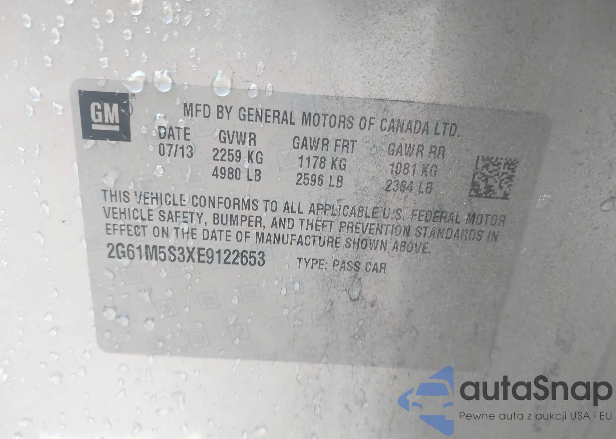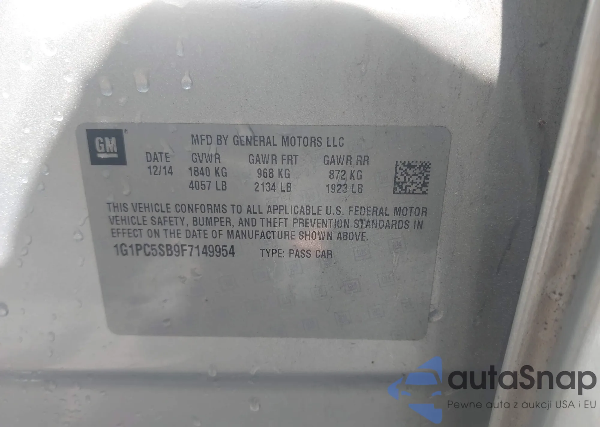 LOT: 42845994 VIN: 1G1PC5SB9F7149954