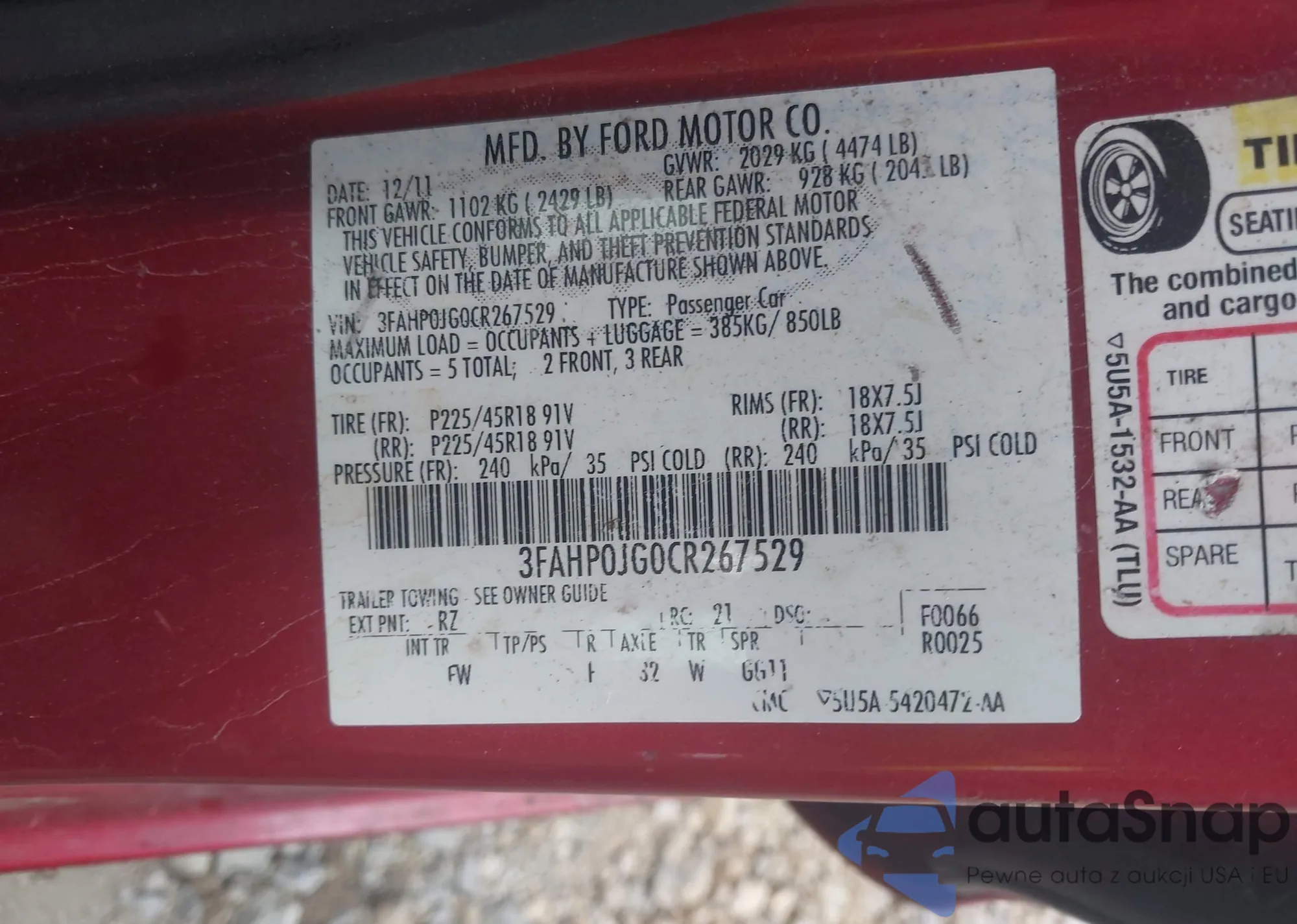 LOT: 42993386 VIN: 1FAFP36N25W293100