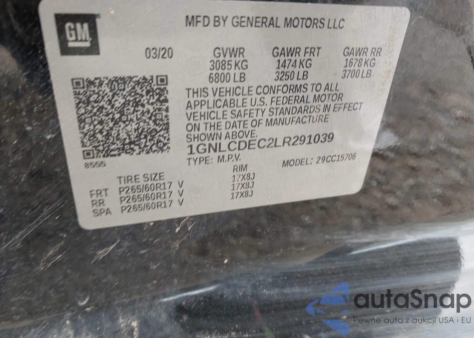 • VIN 1GNLCDEC2LR291039