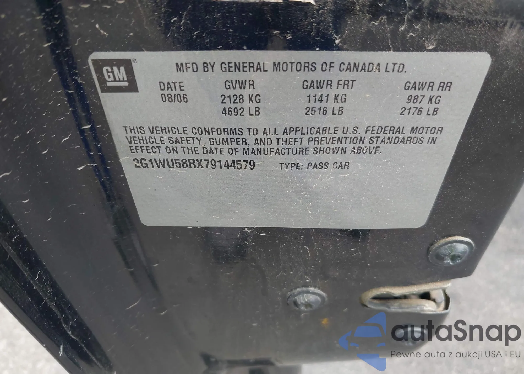 • VIN 2G1WU58RX79144579