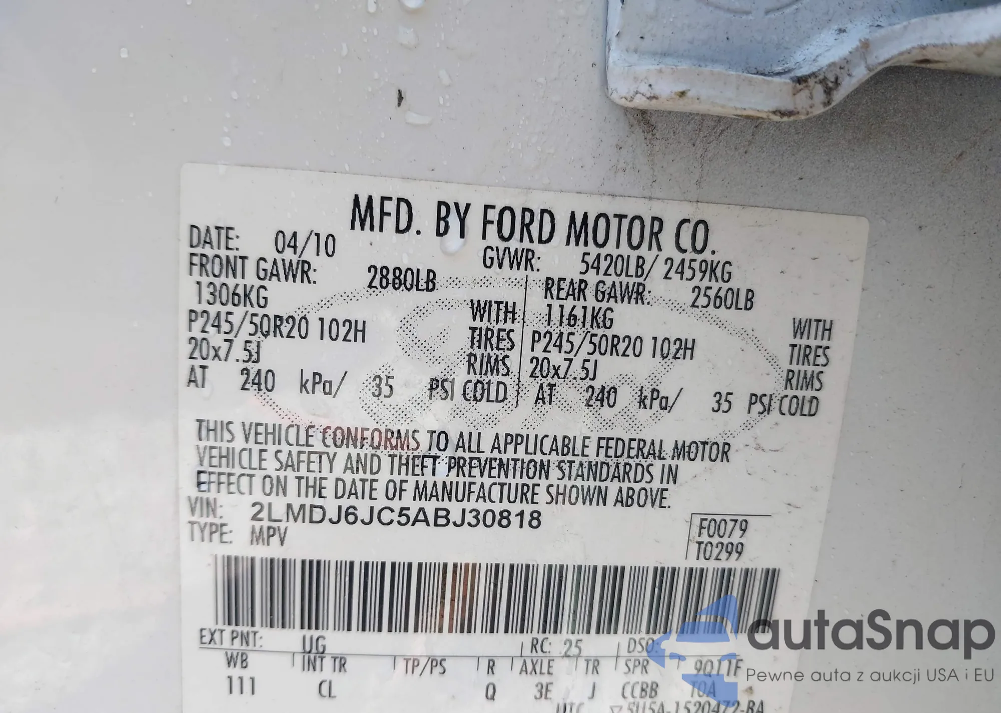 • VIN 2LMDJ6JC5ABJ30818