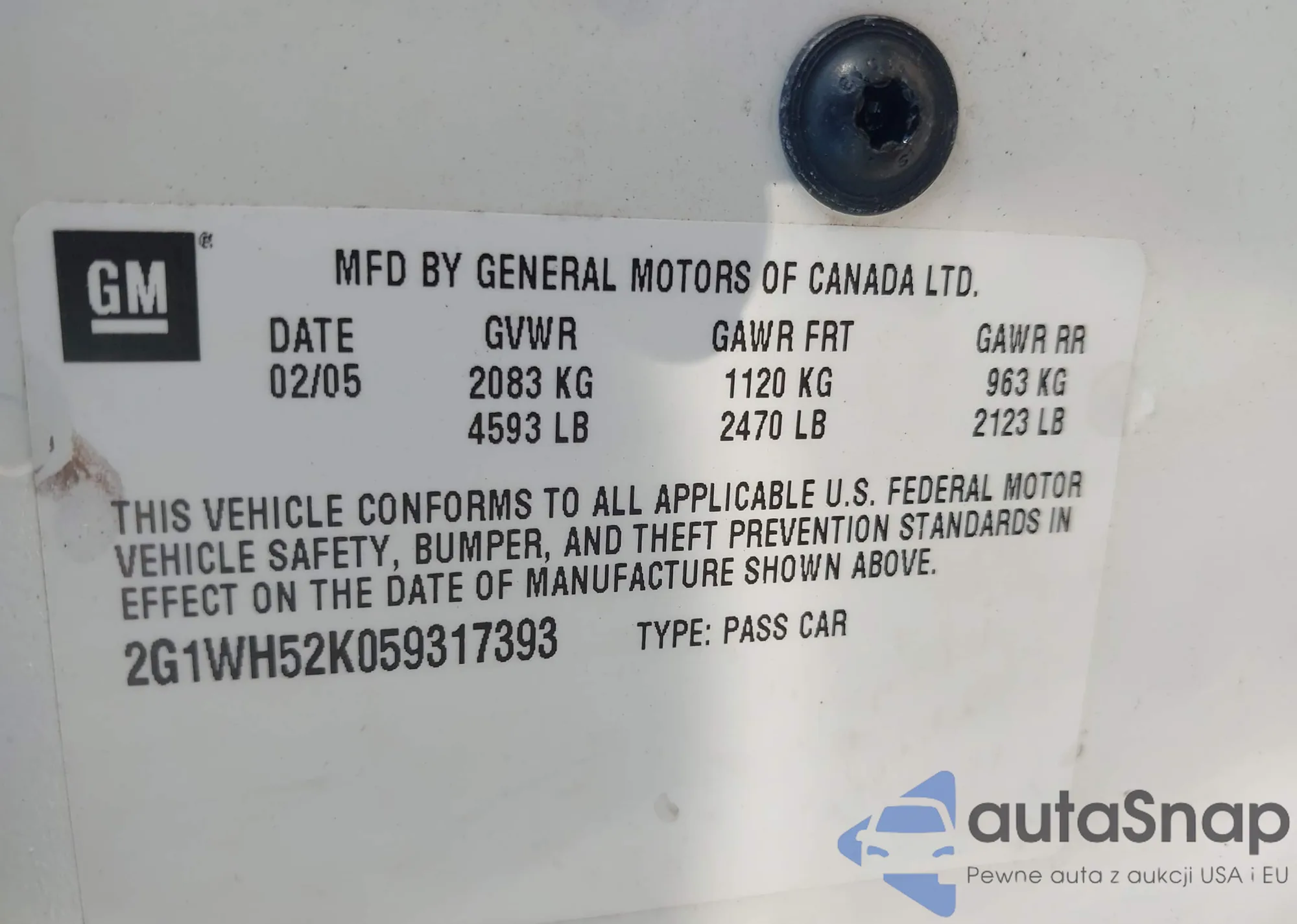 • VIN 2G1WH52K059317393