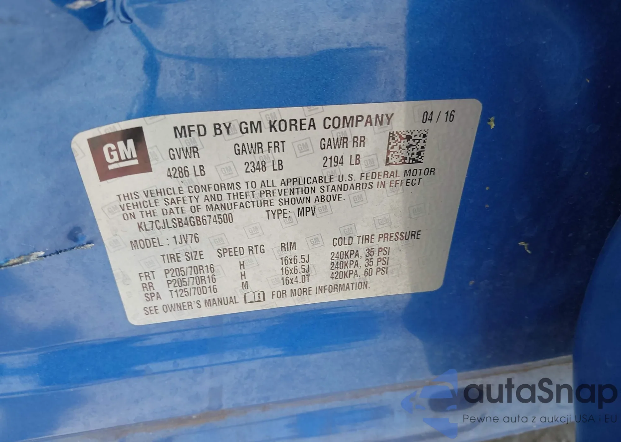 LOT: 42432337 VIN: 3TMAZ5CN1GM009523