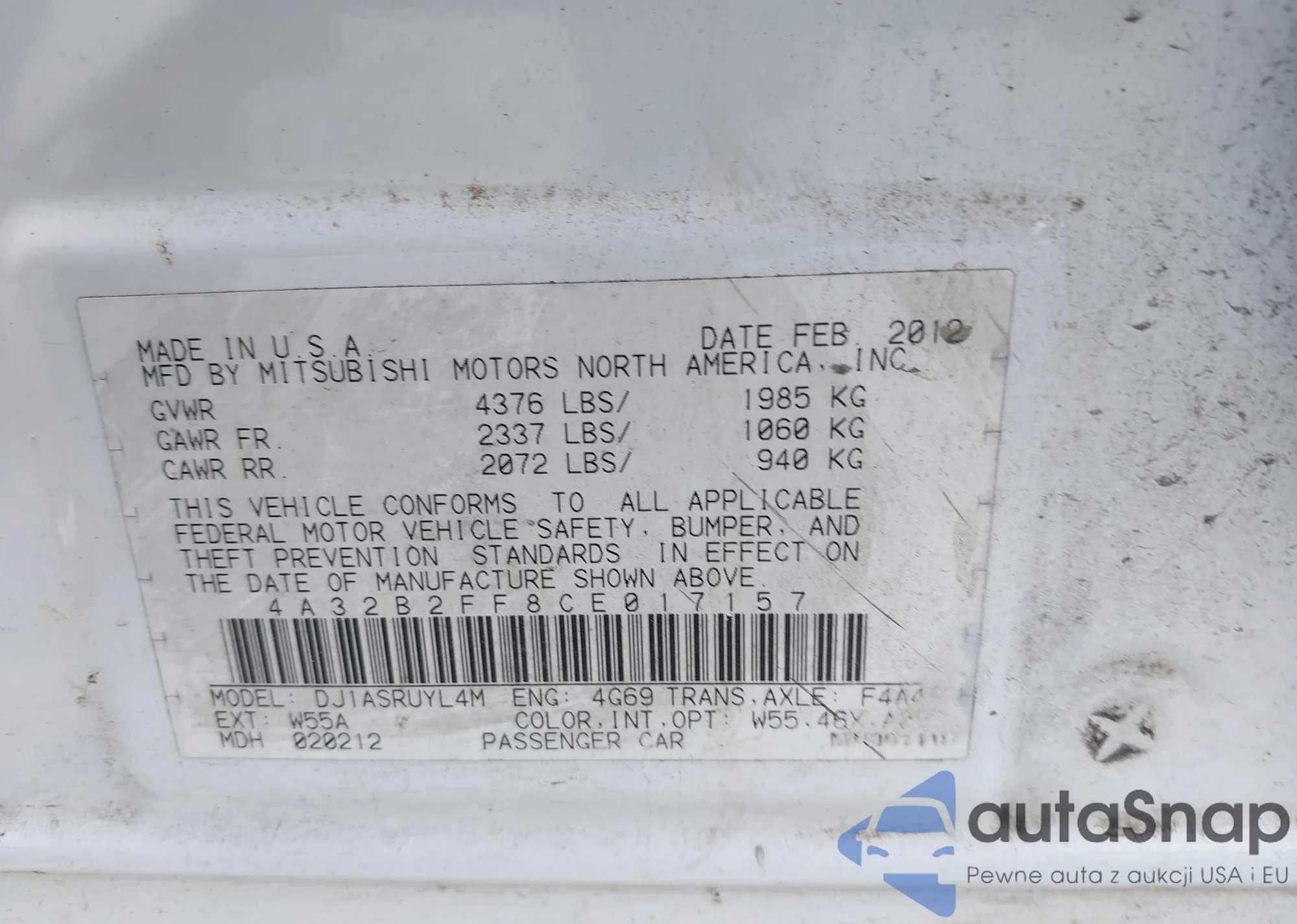LOT: 43056968 VIN: 4A32B2FF8CE017157