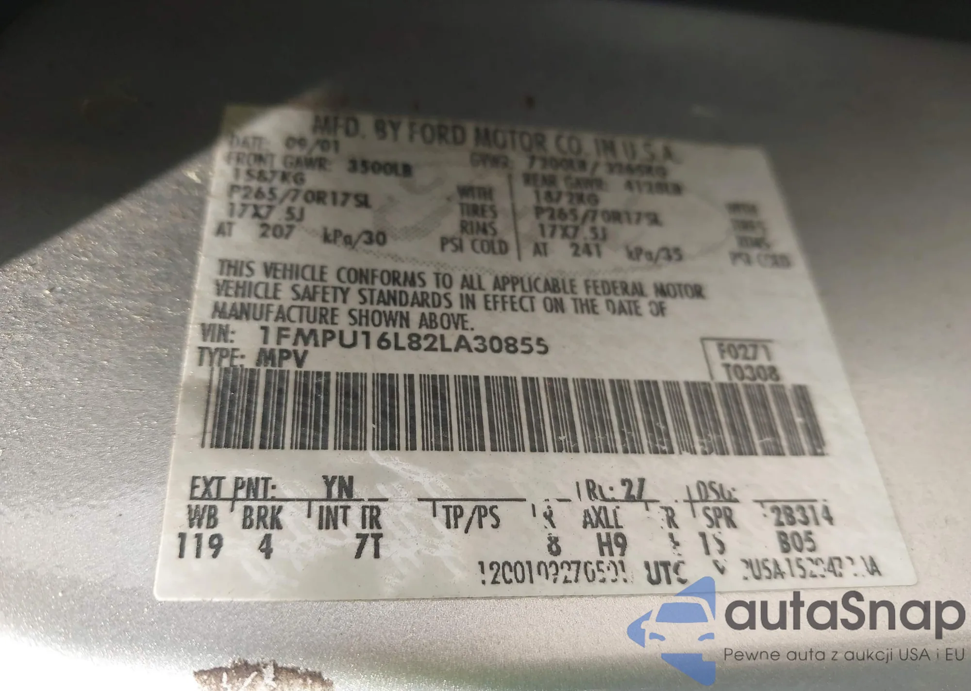 • VIN 1FMPU16L82LA30855