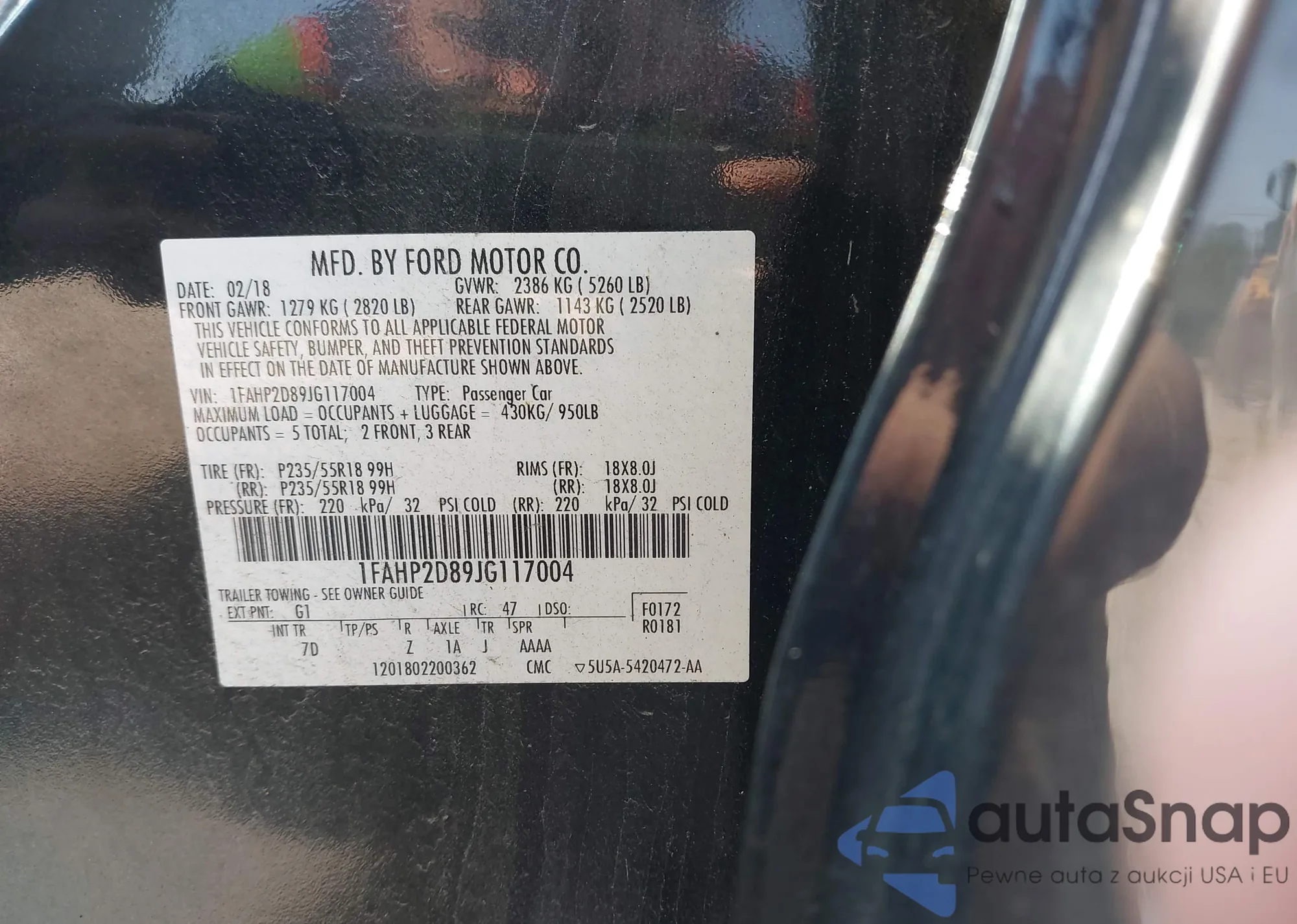• VIN 1FAHP2D89JG117004