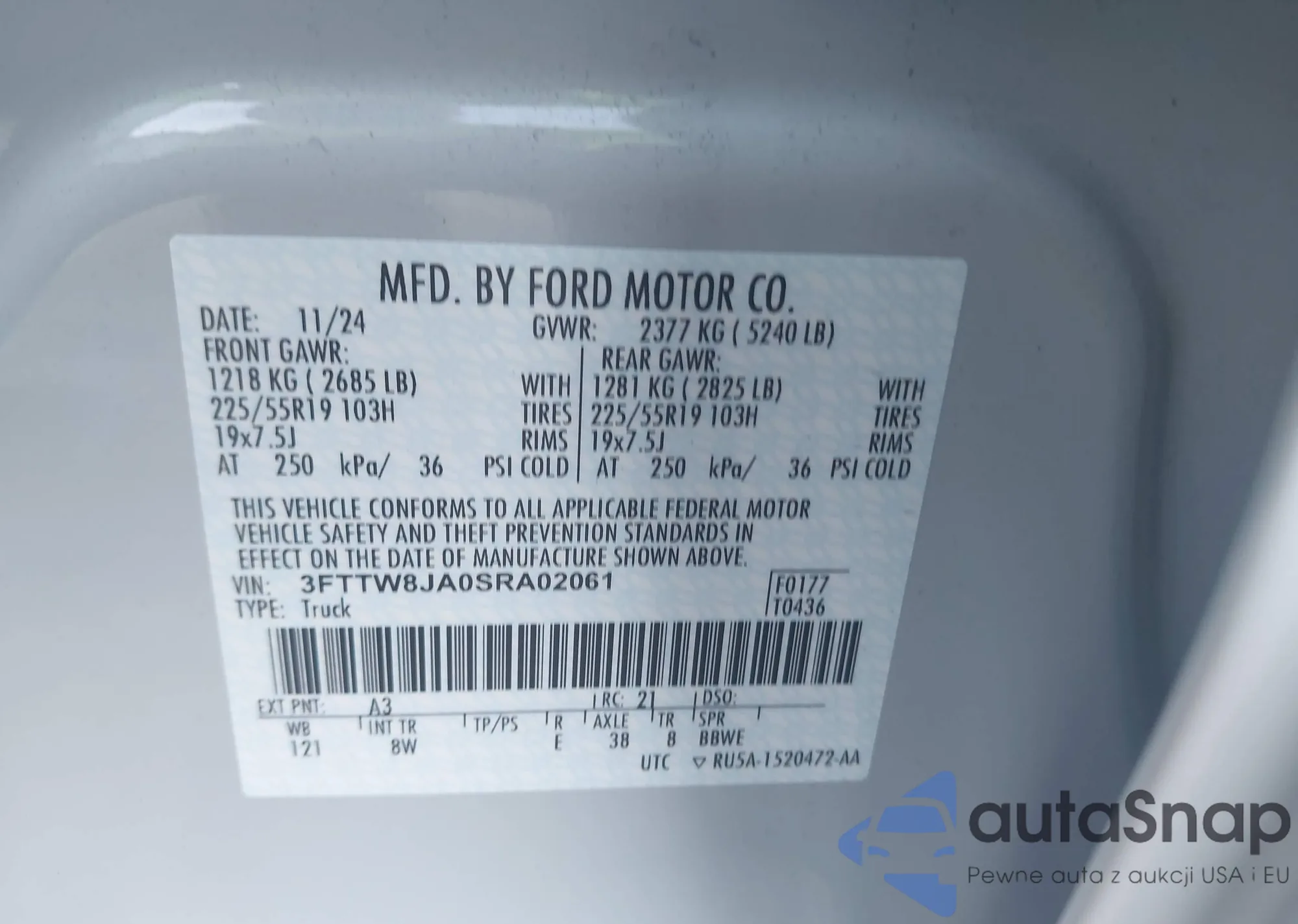 • VIN 3FTTW8JA0SRA02061