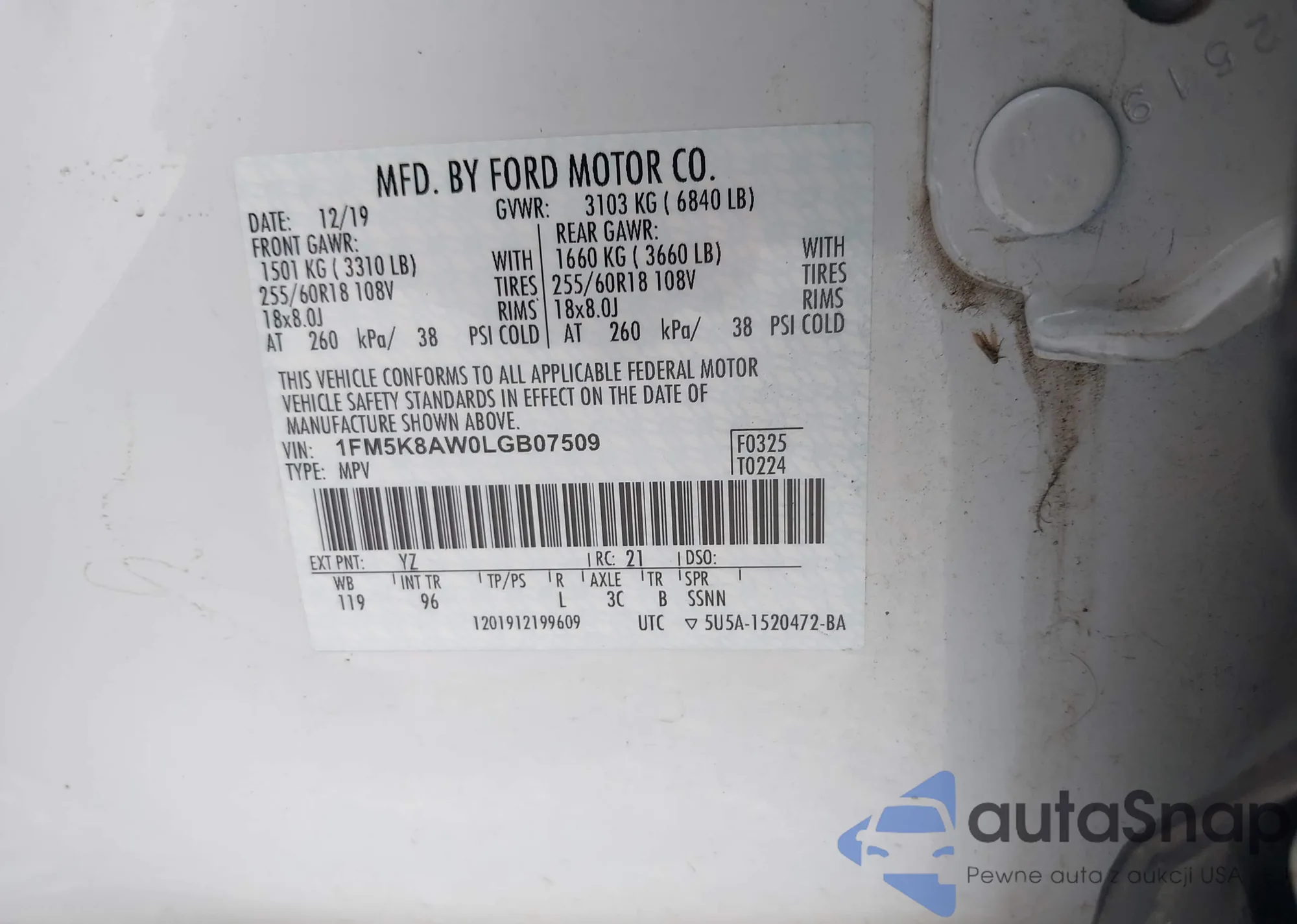 • VIN 2FMPK4J82JBC17856