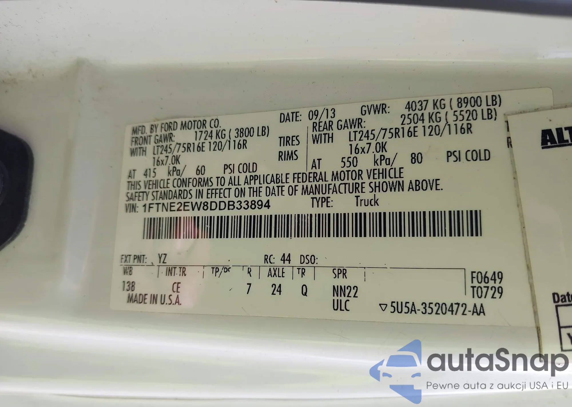 • VIN 1FTNE2EW8DDB33894