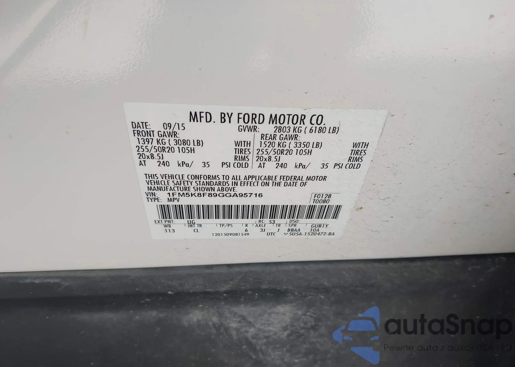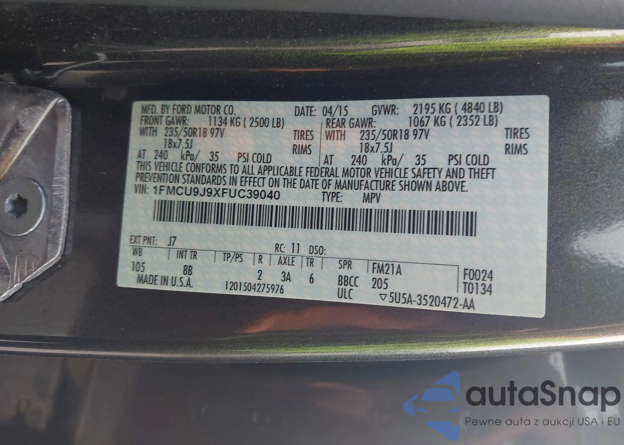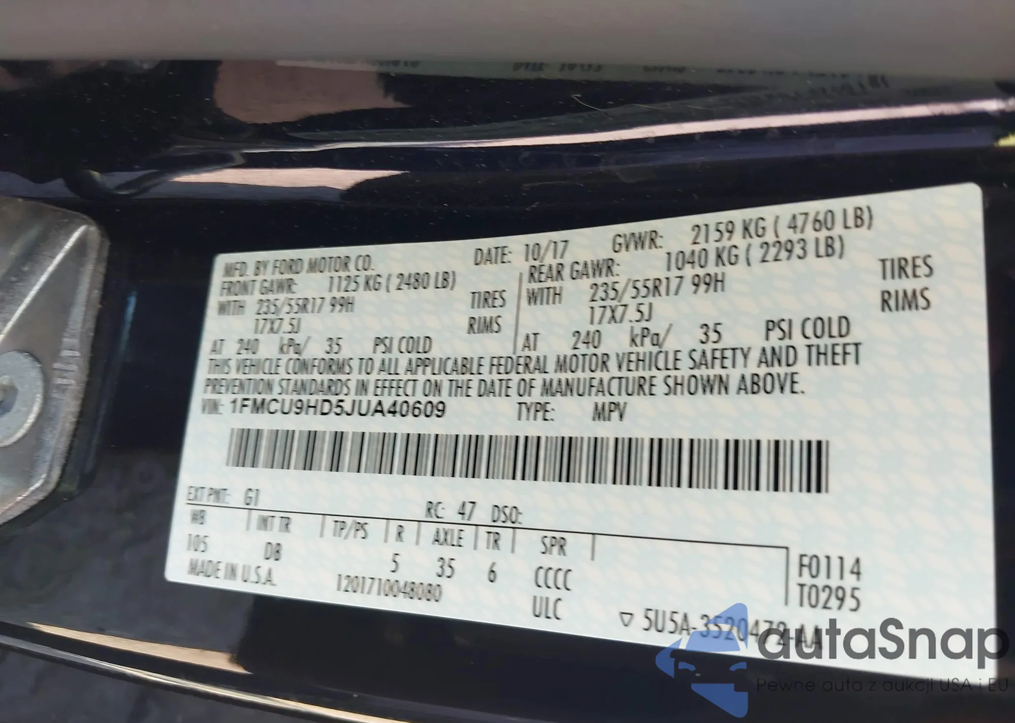 • VIN 1FMCU9GX8EUC89097