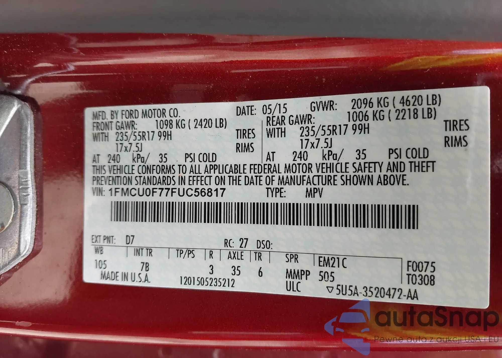 LOT: 42970129 VIN: 1FMCU0F77FUC56817
