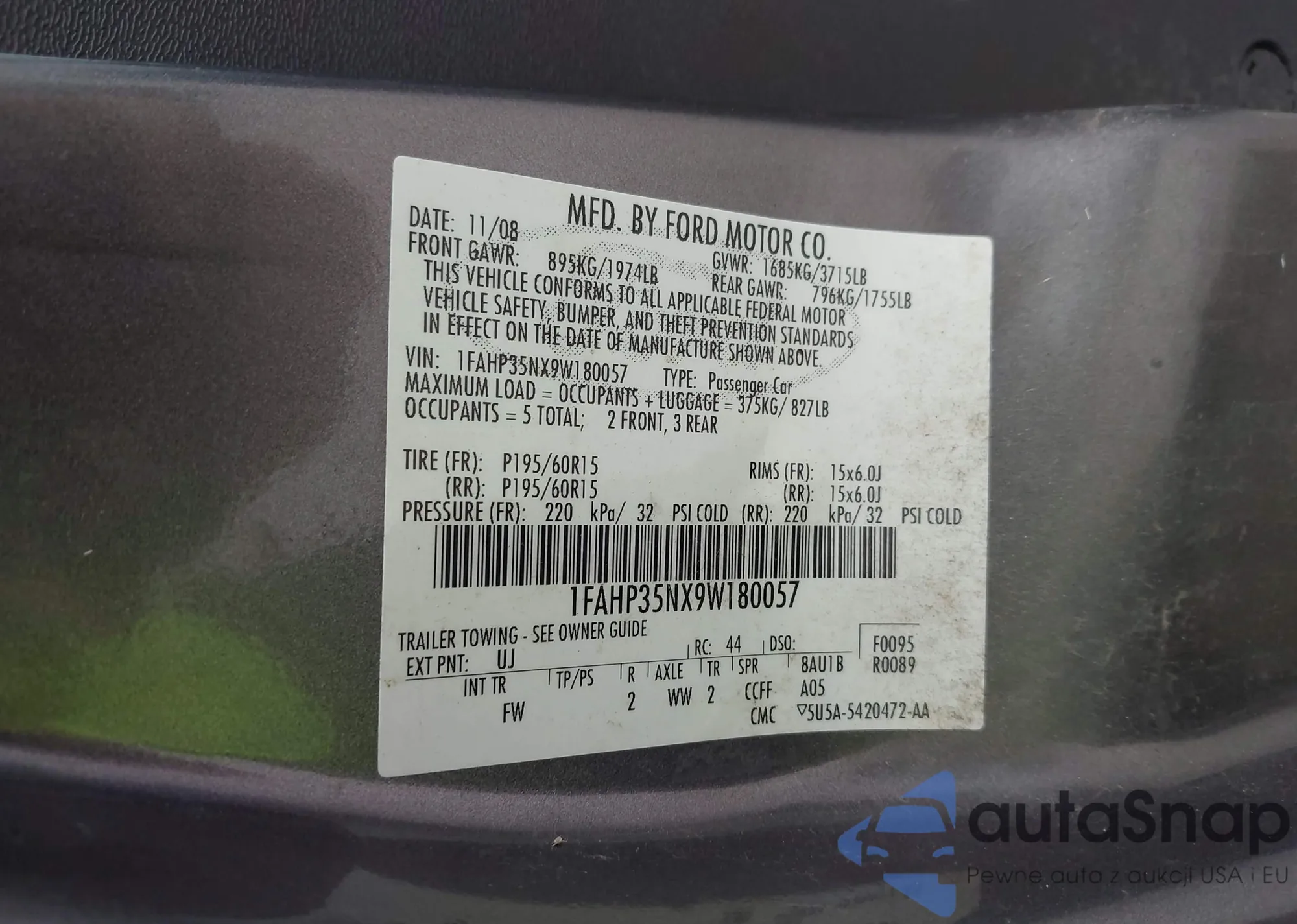 • VIN 1FAHP35NX9W180057