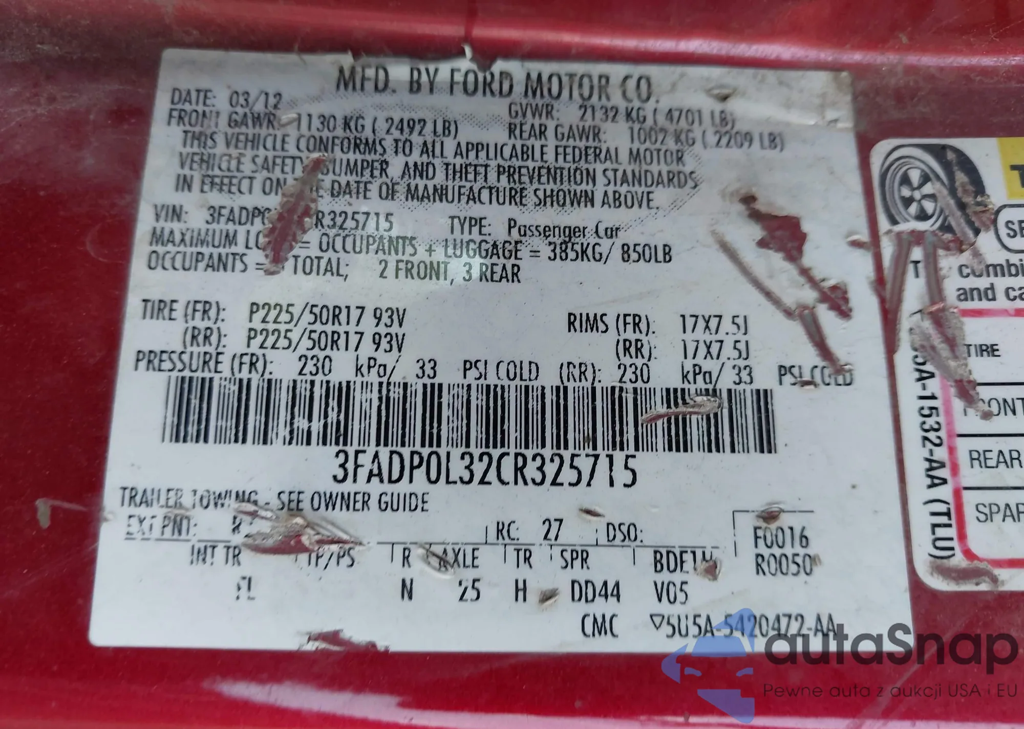 LOT: 42903258 VIN: 3FAHP0JA0BR321745