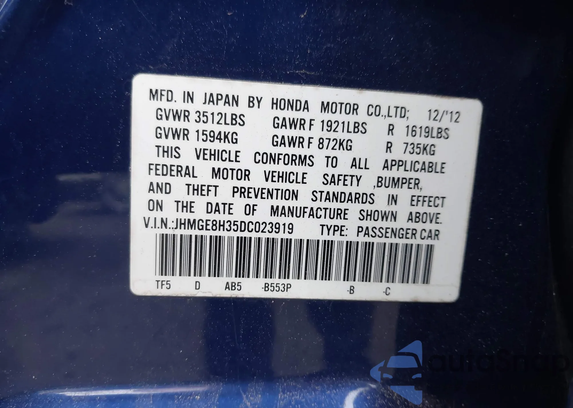 • VIN 5XXGR4A69CG075894