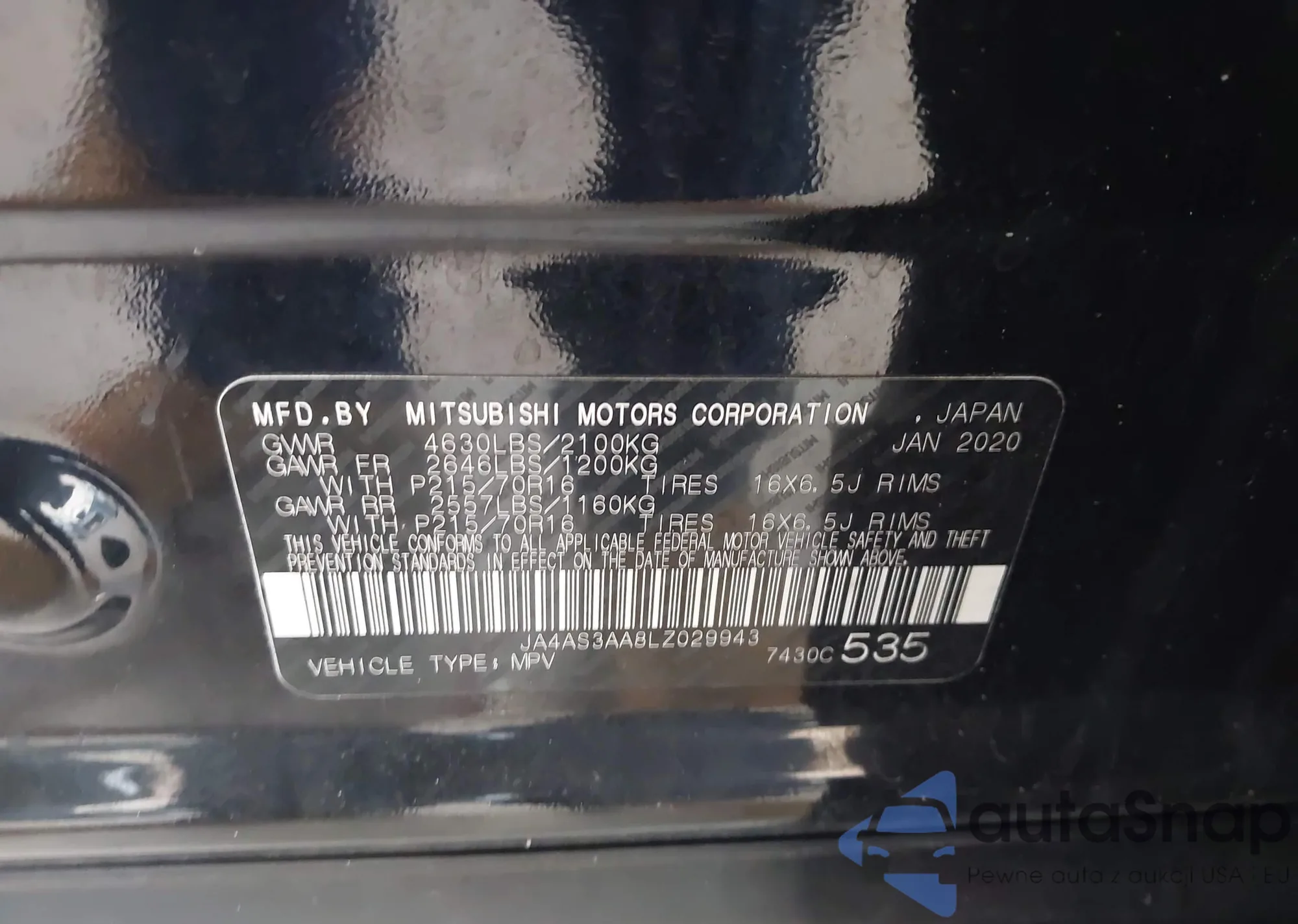 LOT: 42752886 VIN: JA4AS3AA8LZ029943