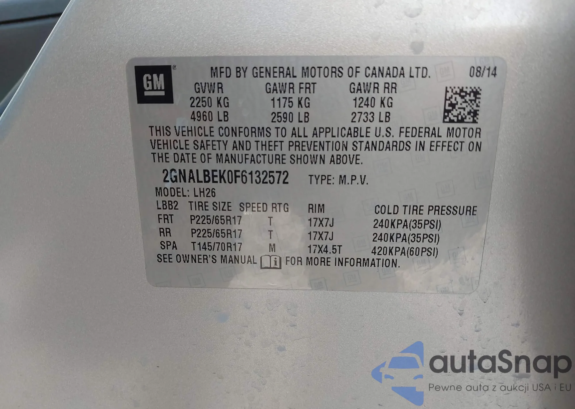 LOT: 41855963 VIN: 2GNALBEK0F6132572