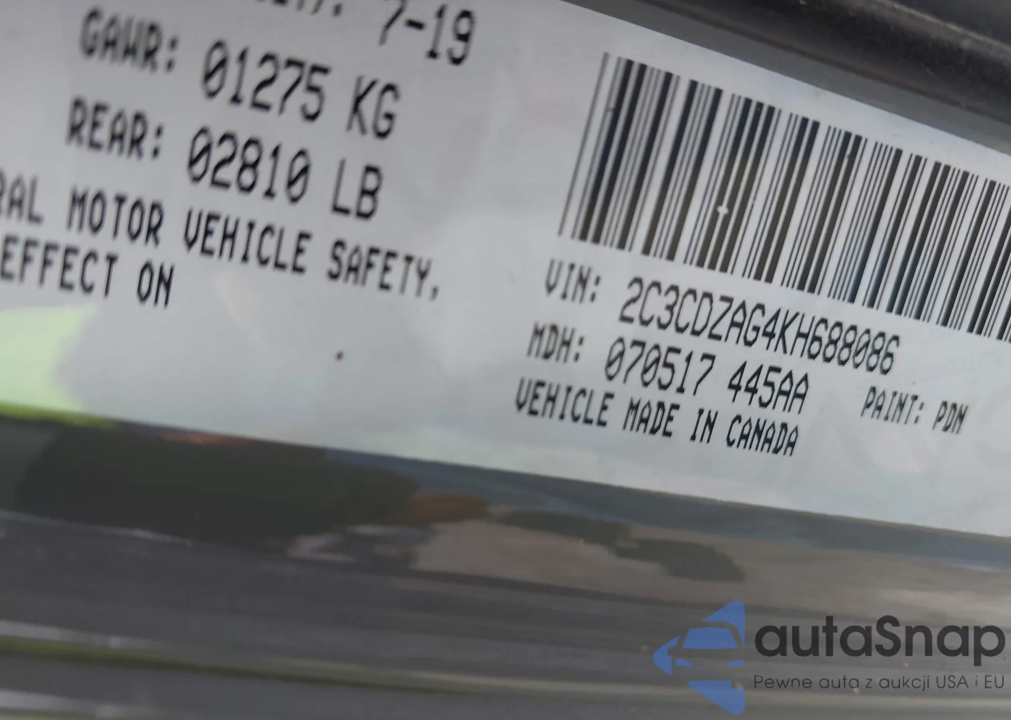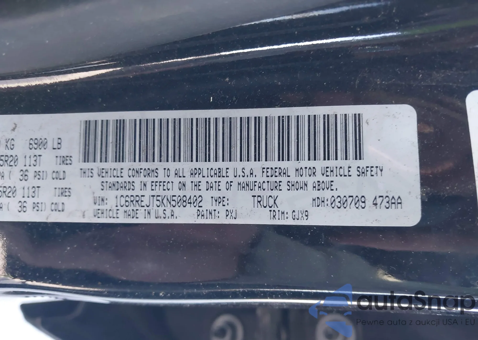 • VIN 1C6RREJT5KN508402
