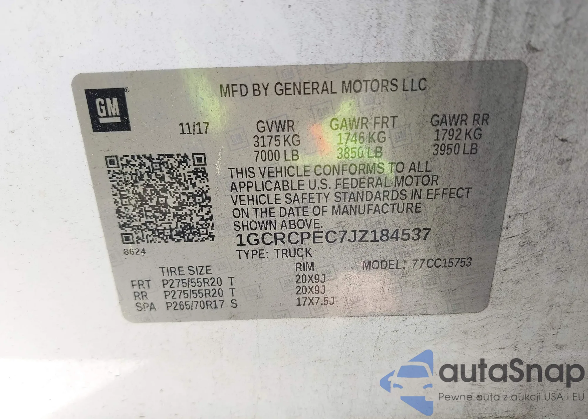 • VIN 1GCRCPEC7JZ184537