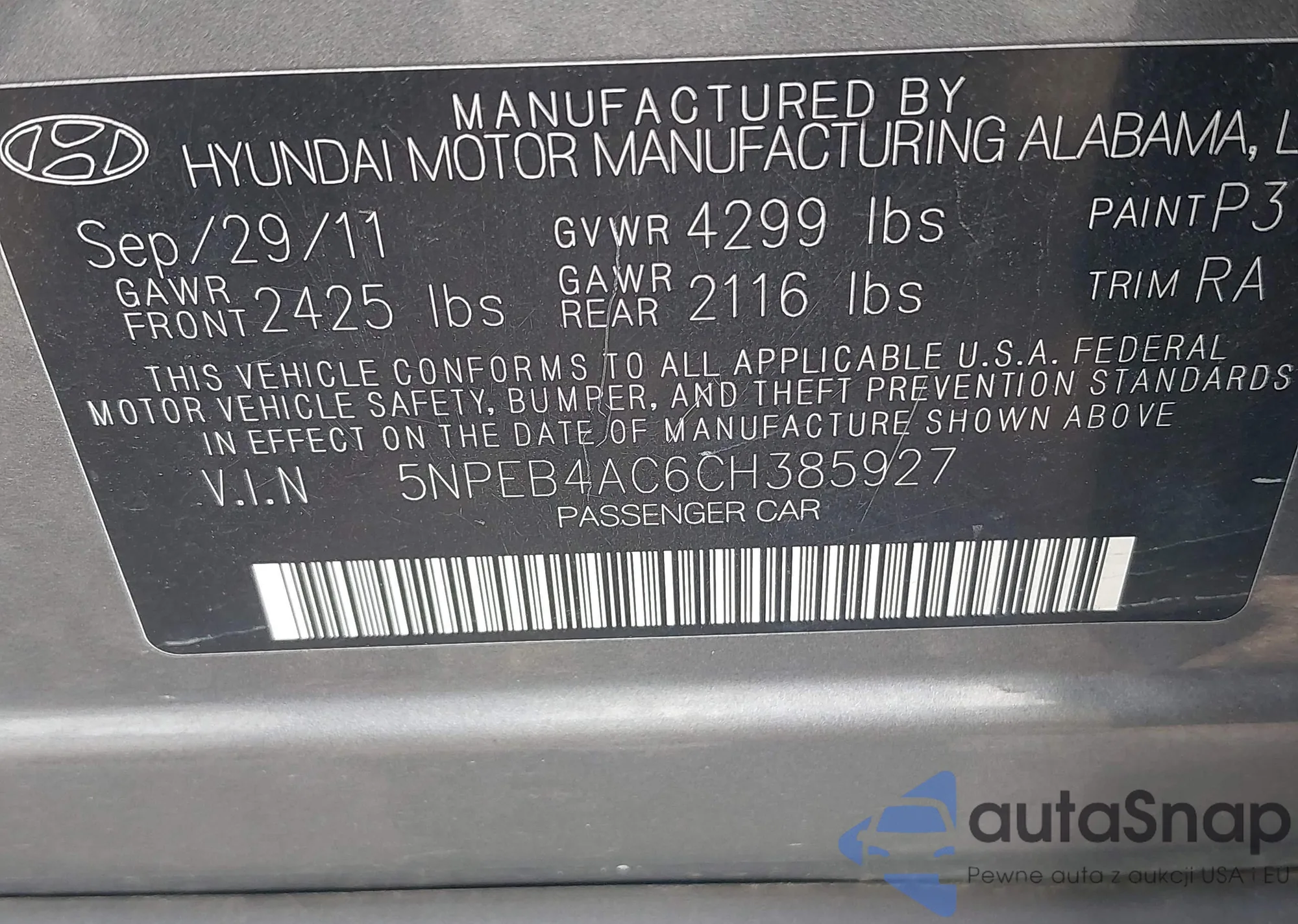 • VIN 5NPEB4AC6CH385927