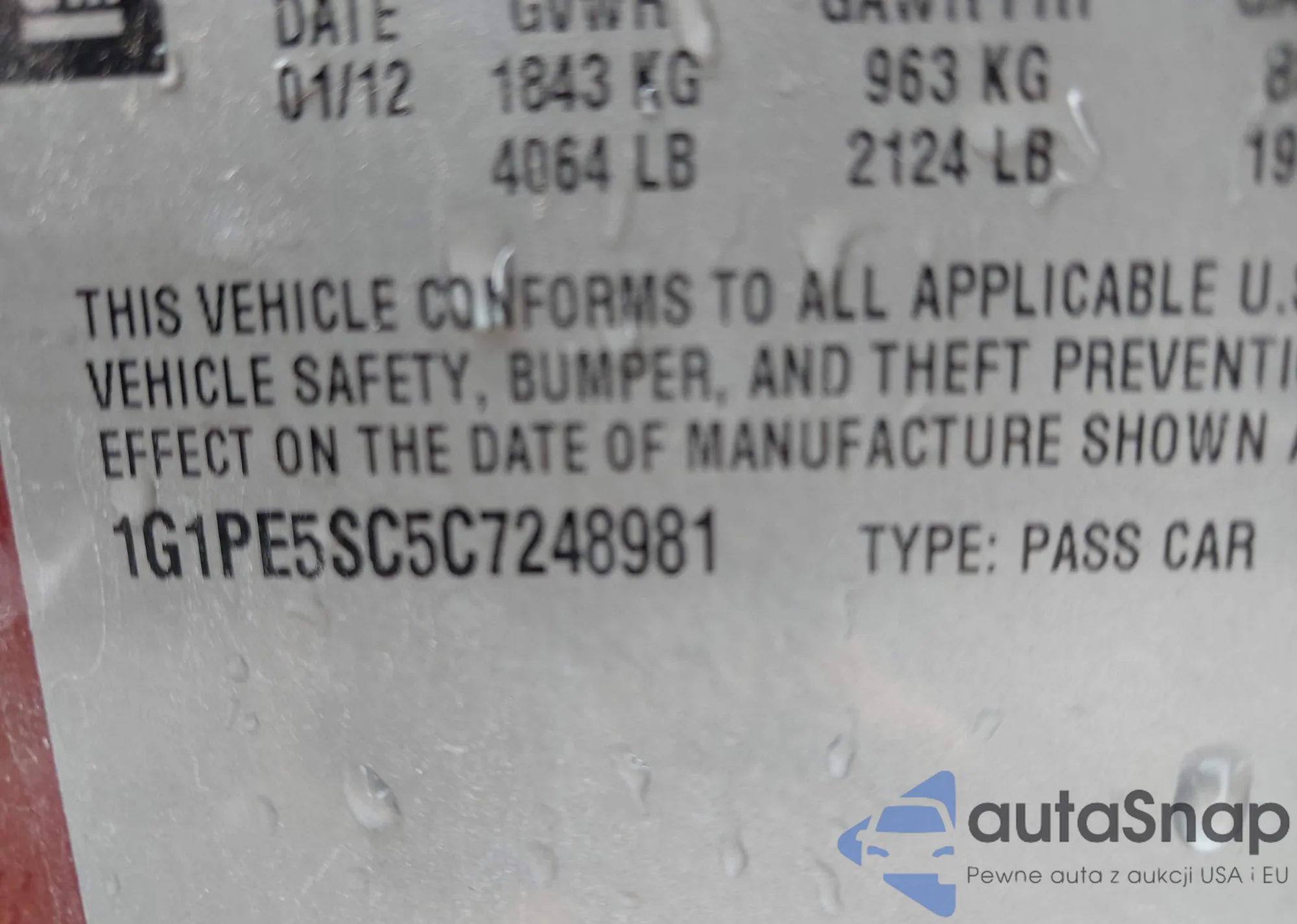 LOT: 42669622 VIN: 1G1PE5SC5C7248981