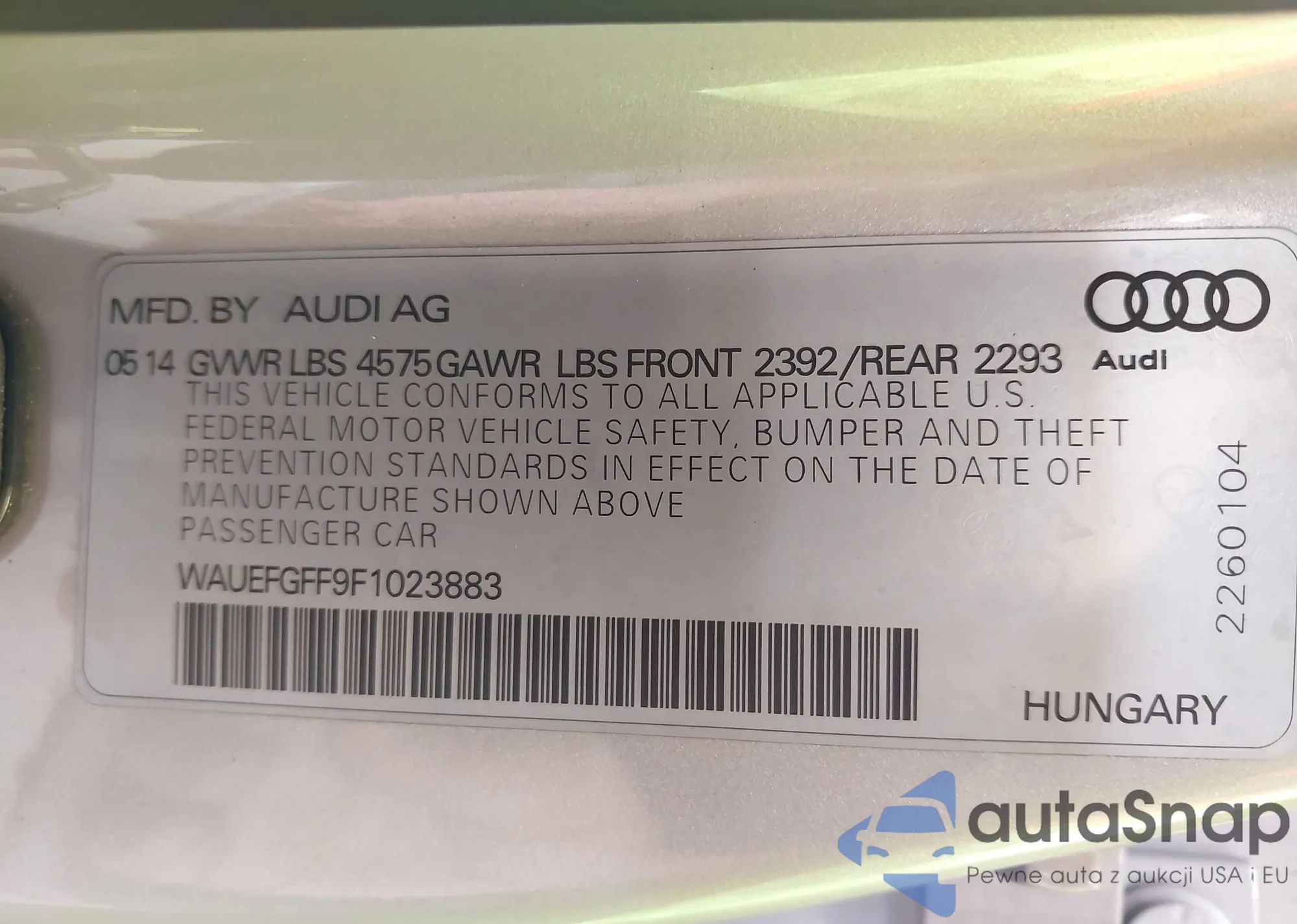 LOT: 42686969 VIN: WAUEFGFF9F1023883