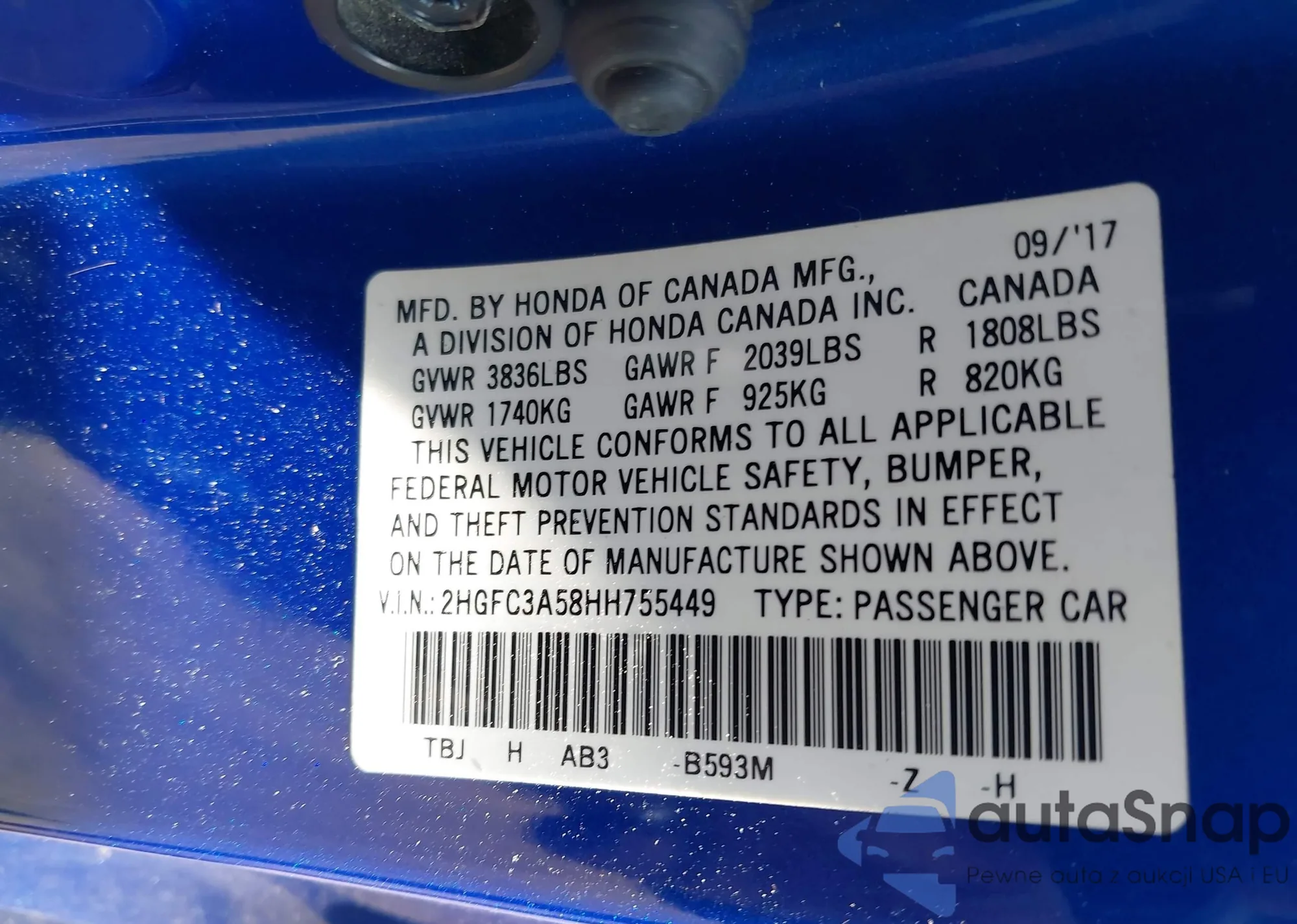 LOT: 42868228 VIN: SHSRD78895U308784