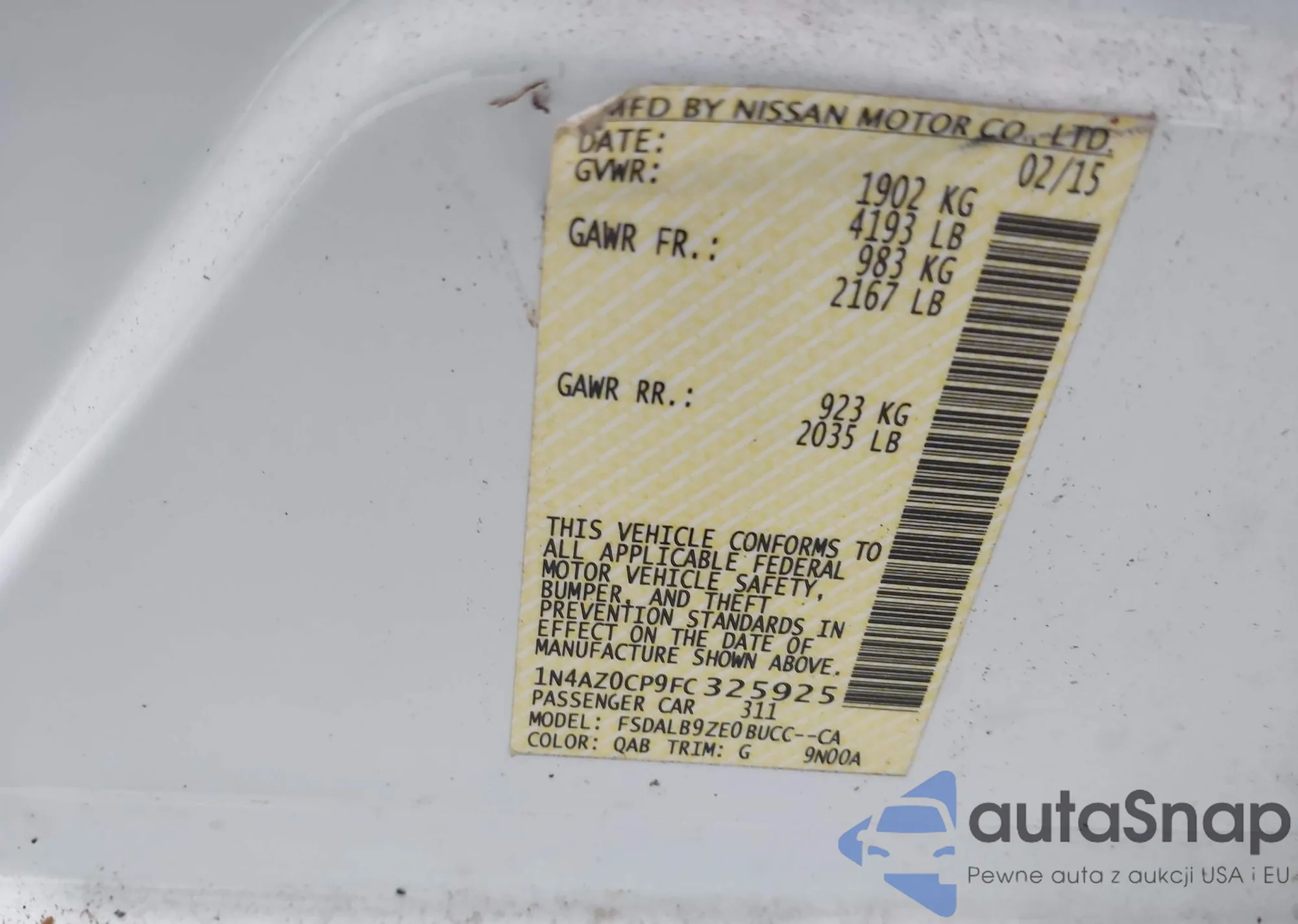 LOT: 42843502 VIN: 1N4AZ0CP9FC325925