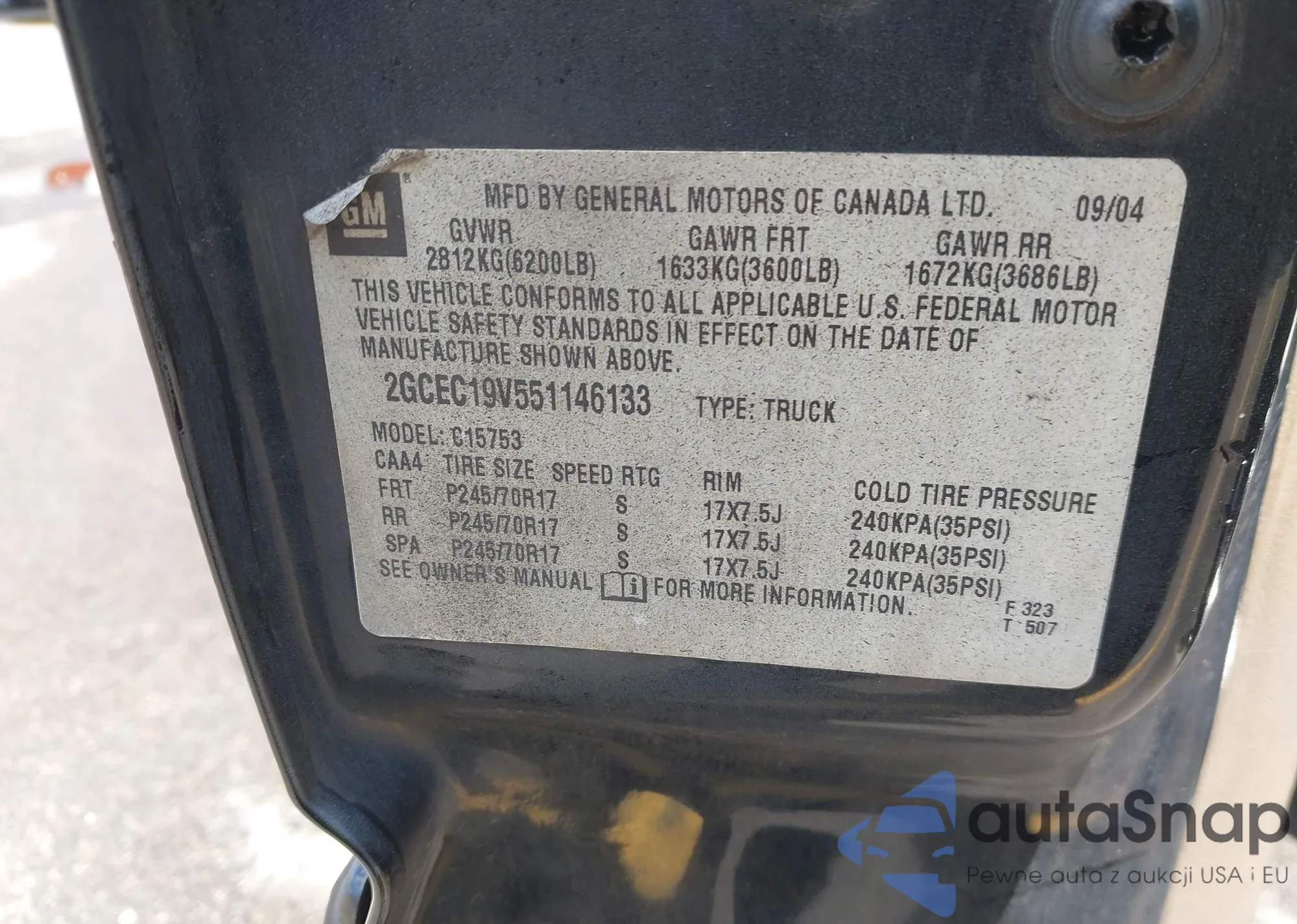 • VIN 2GCEC19V551146133