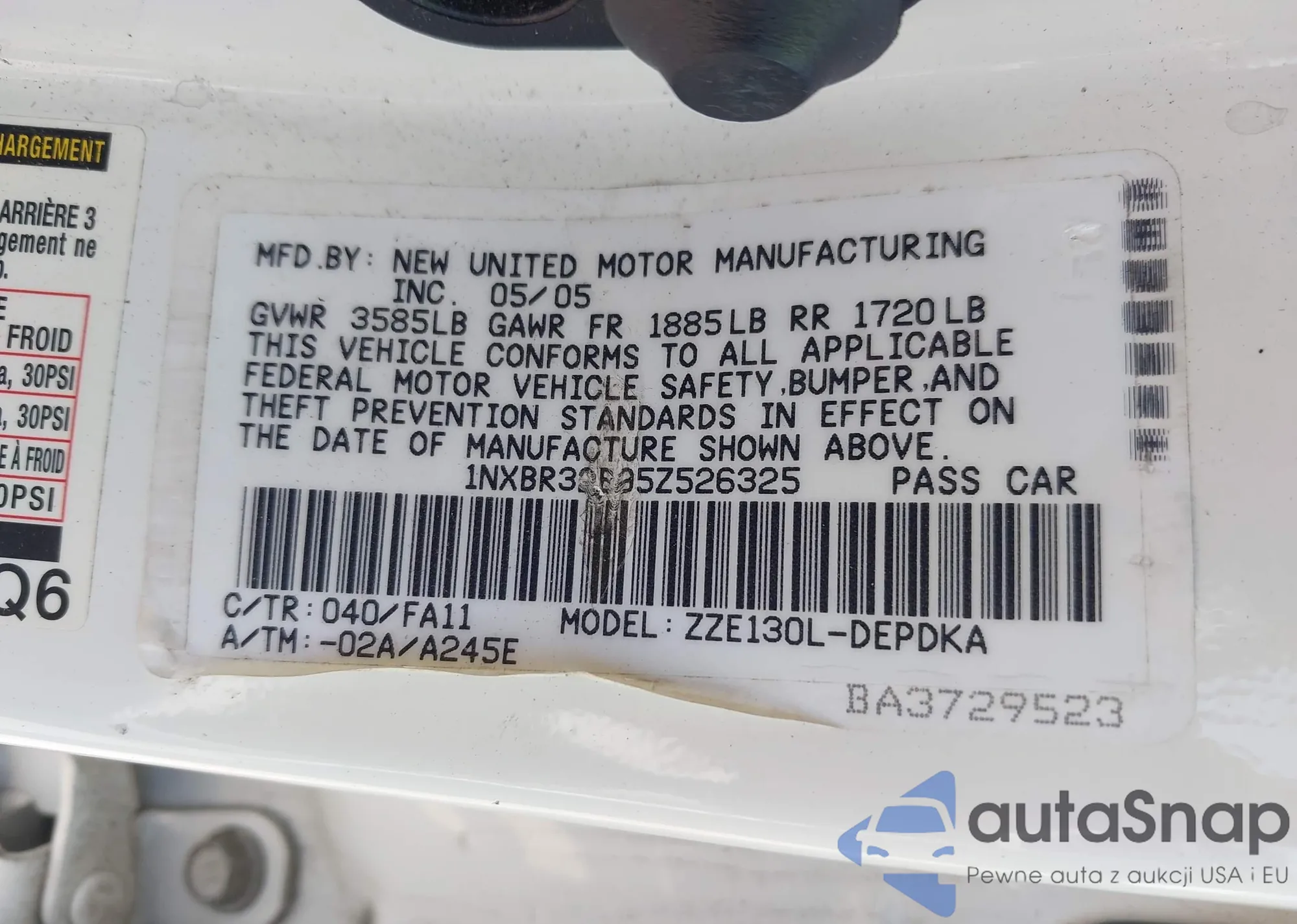 • VIN 3MVDMBDL1LM125515